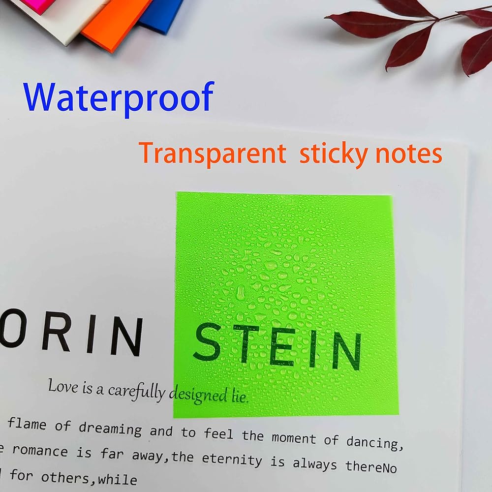 ►【suggestion】: Keep it in a cool and dry place to keep it sticky. Due to transparent sticky notes waterproof PET material, we recommend that you use ballpoint pens, markers or pencils instead of water-based pen for writing or drawing, or let them dry when using water-based pen, do not wipe them immediately.