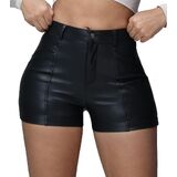 Features : - Black Short Leather Pants - High Waist ,Tight, Faux PU Leather, Slight Stretch Fabric, Zipper Closure, Soft Material. Matte Texture.