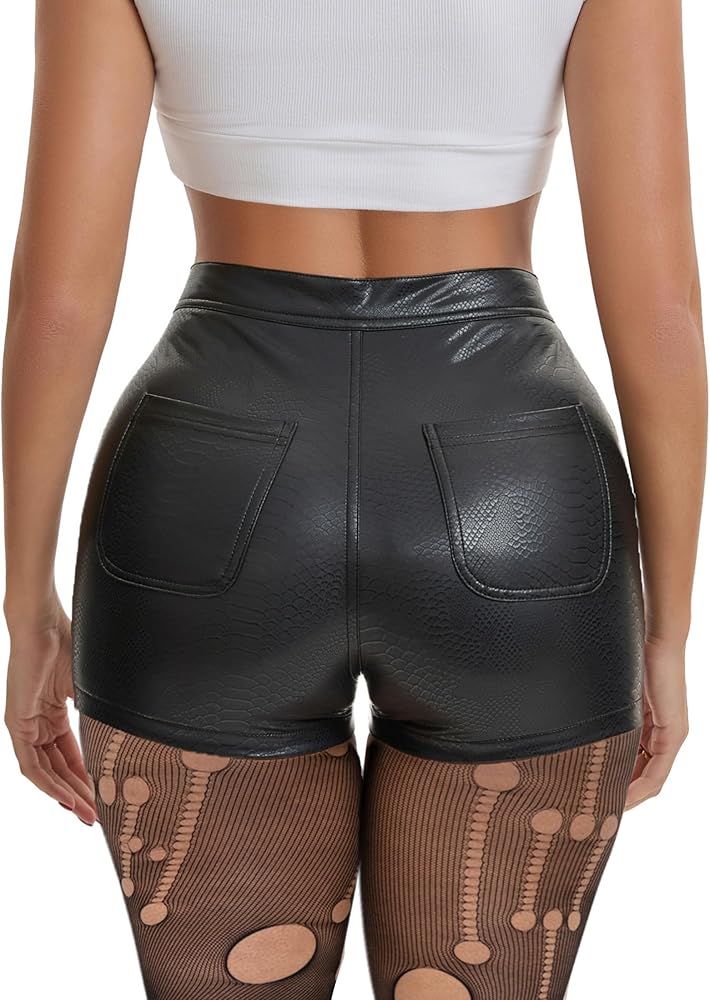 Versatile : This faux leather biker shorts perfect paired with tank tops or tunics and high heels easily. Make you feel confident and charming, stylish and fashionable in party, nitht club, dance, discco, outdoor, etc.