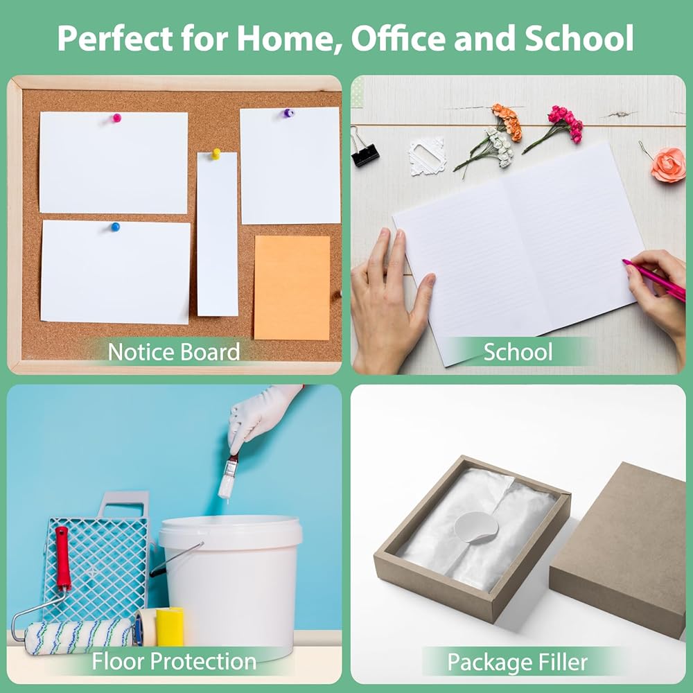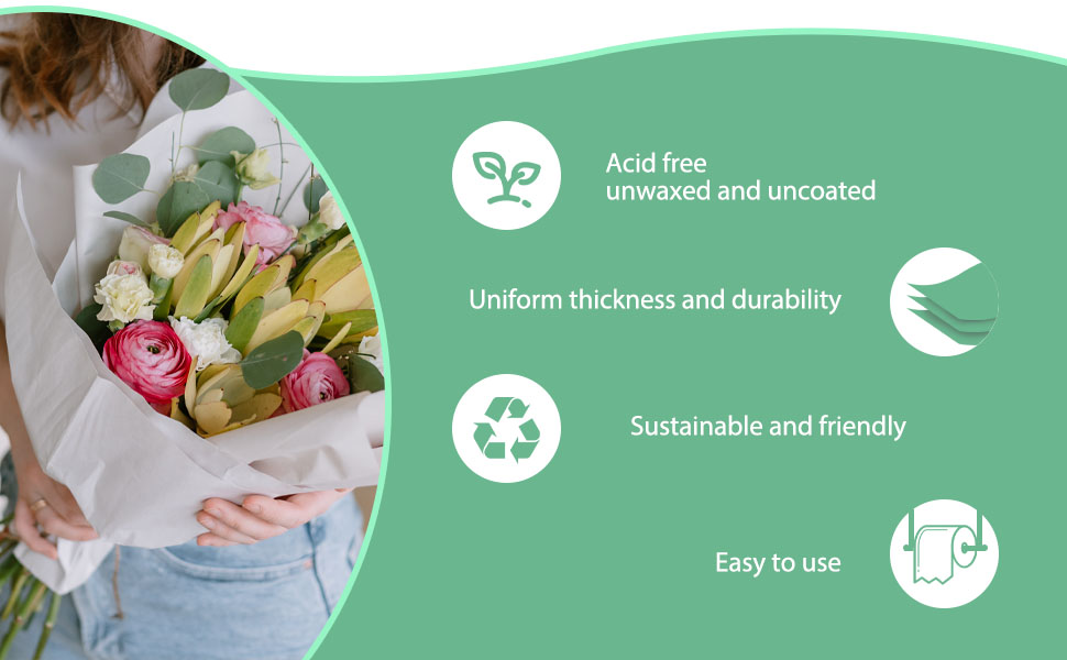 【Arts and Crafts Supplies】:Unwaxed and uncoated white craft paper has a clean and smooth surface with good resistance to moisture, which is good for your artistic creations. It can be used for crafts, painting, flowers, gift wrapping, wall flooring, etc. It is also suitable for acrylic paint, markers, pencils, crayons, origami and other projects.