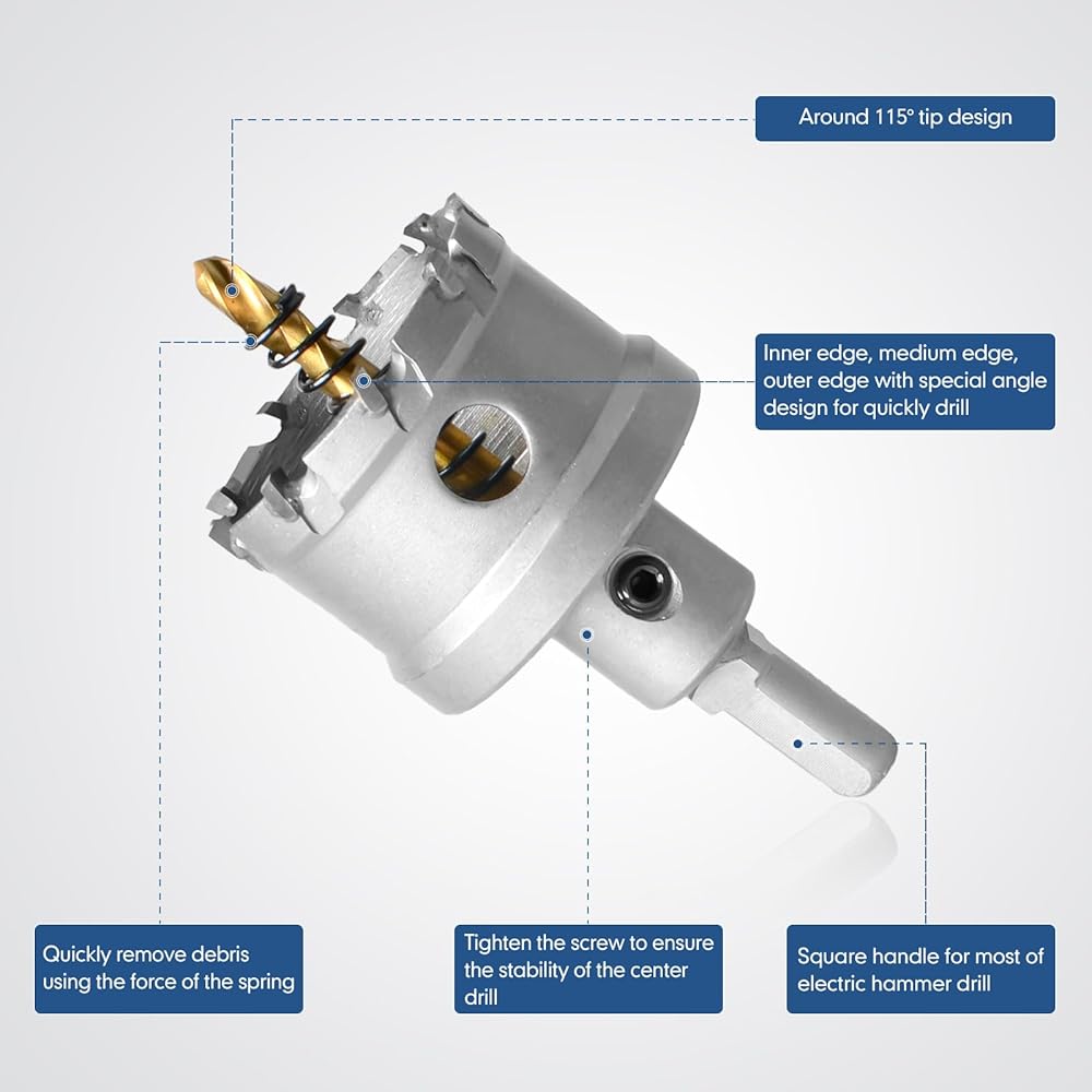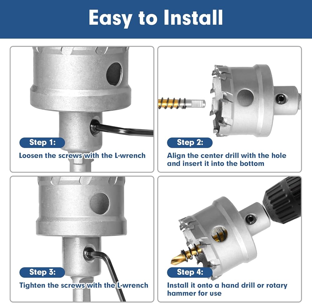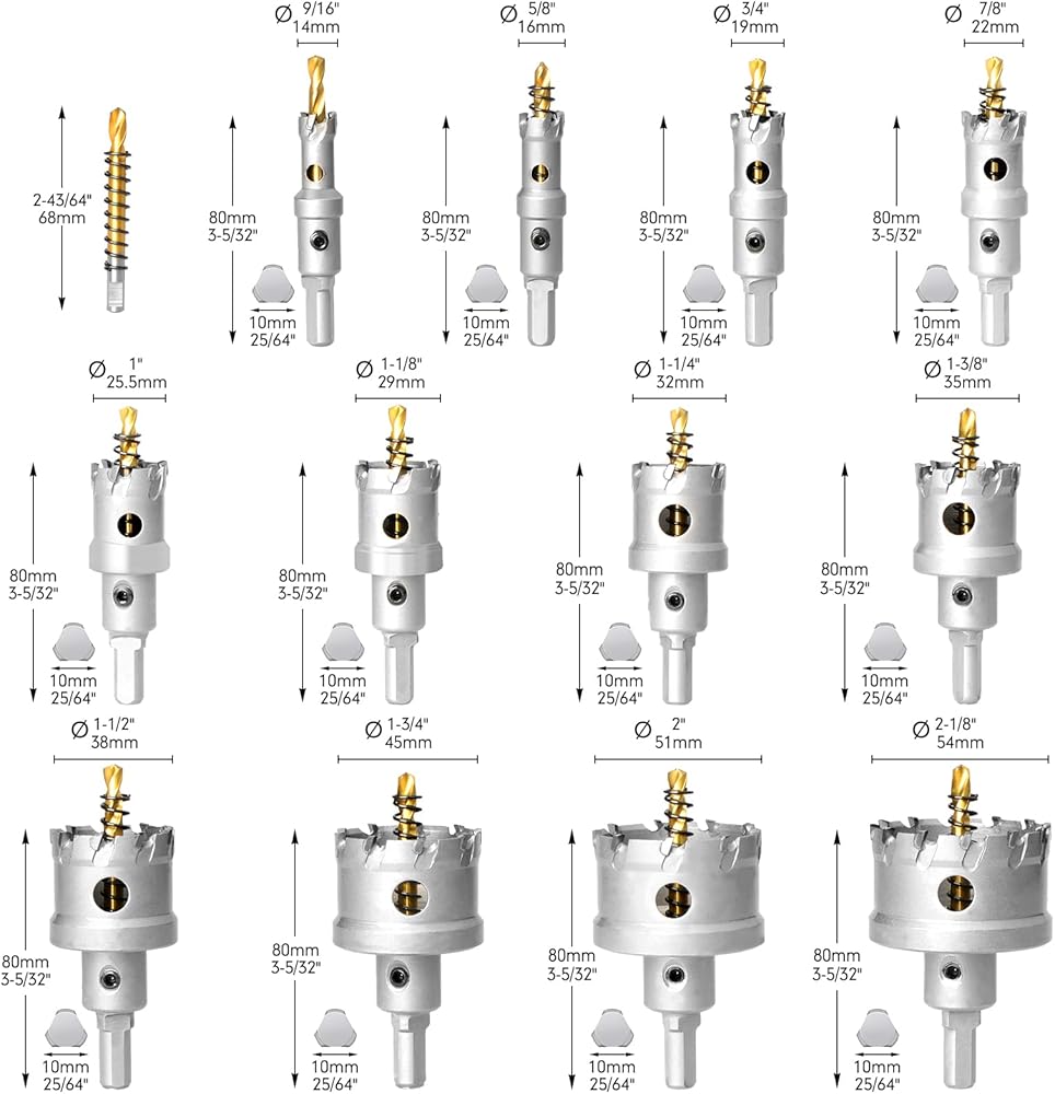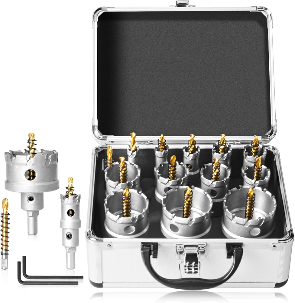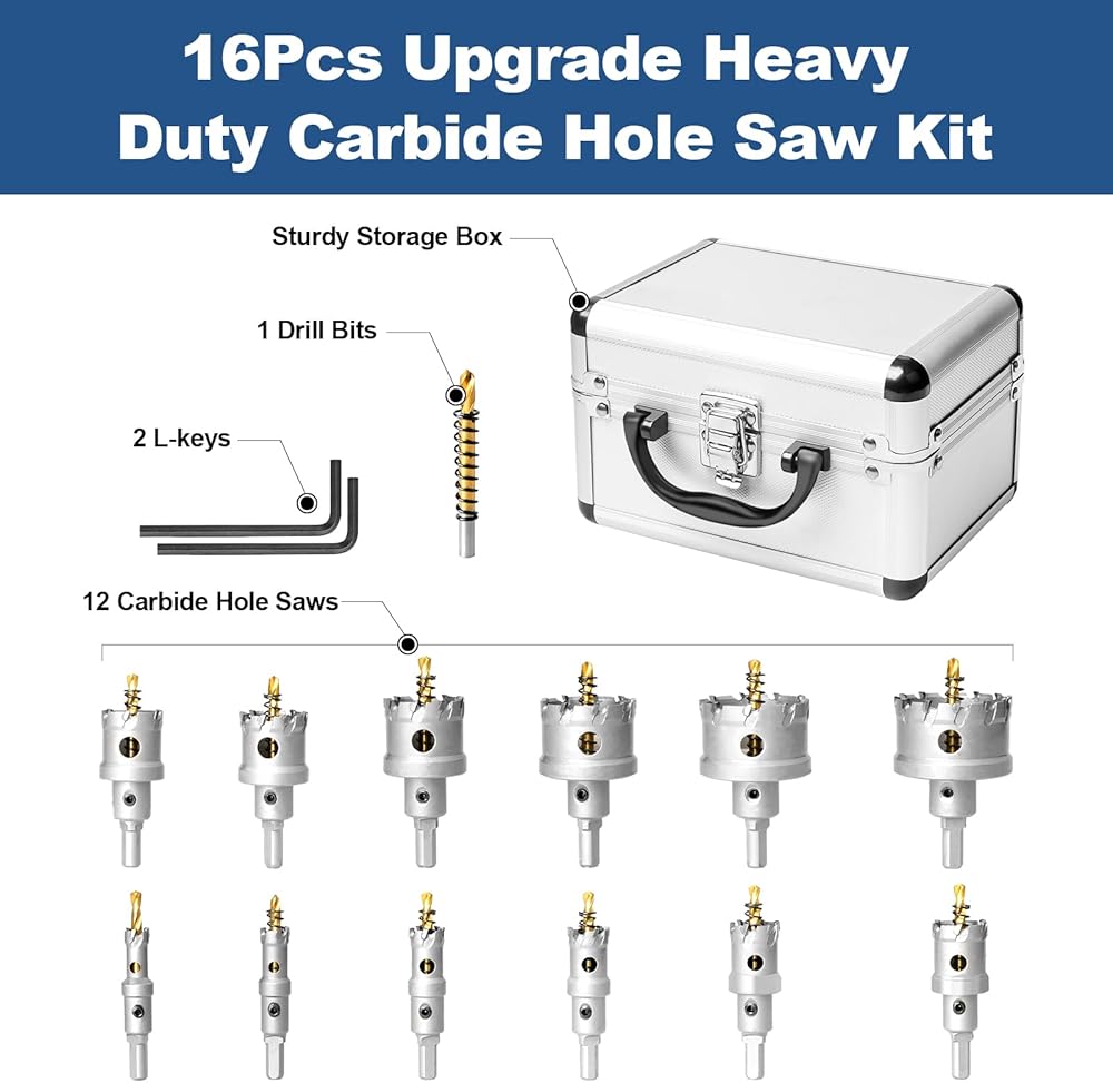 16Pcs Upgrade Heavy Duty Carbide Hole Saw Kit - Metal Steel Hole Saw Drill Bits TCT Hole Cutter with 1Pc Center Drill 2Pcs L-Wrench - Hole Saw Set for Metal, Steel, Iron, Alloy, Copper