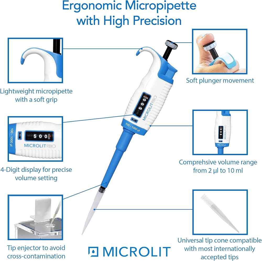 • معالجة مريحة وبديهية - انقل السوائل بسهولة باستخدام الماصة الدقيقة خفيفة الوزن. يوفر المقبض الكبير قبضة رائعة. بالإضافة إلى المقبض الناعم، تحتوي ماصة المختبر لدينا أيضًا على مكبس ناعم يسهل راحة المستخدم أثناء ساعات السحب الطويلة.