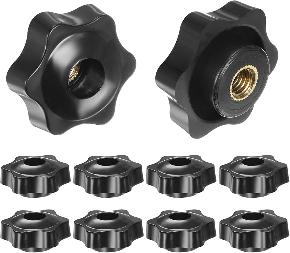 Star knobs are made from plastic material ensuring durability and long-lasting performance. Brass metal screw-in female thread provides strength and corrosion resistance for long service life. Sturdy and durable threaded knobs provides a smooth surface, comfortable grip and ergonomic operation for enhanced user control and ease of use.
