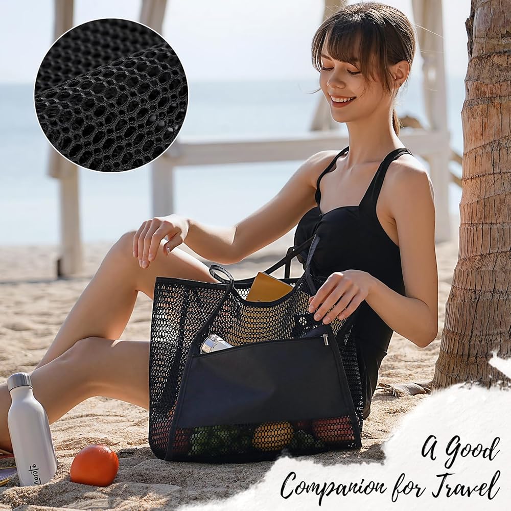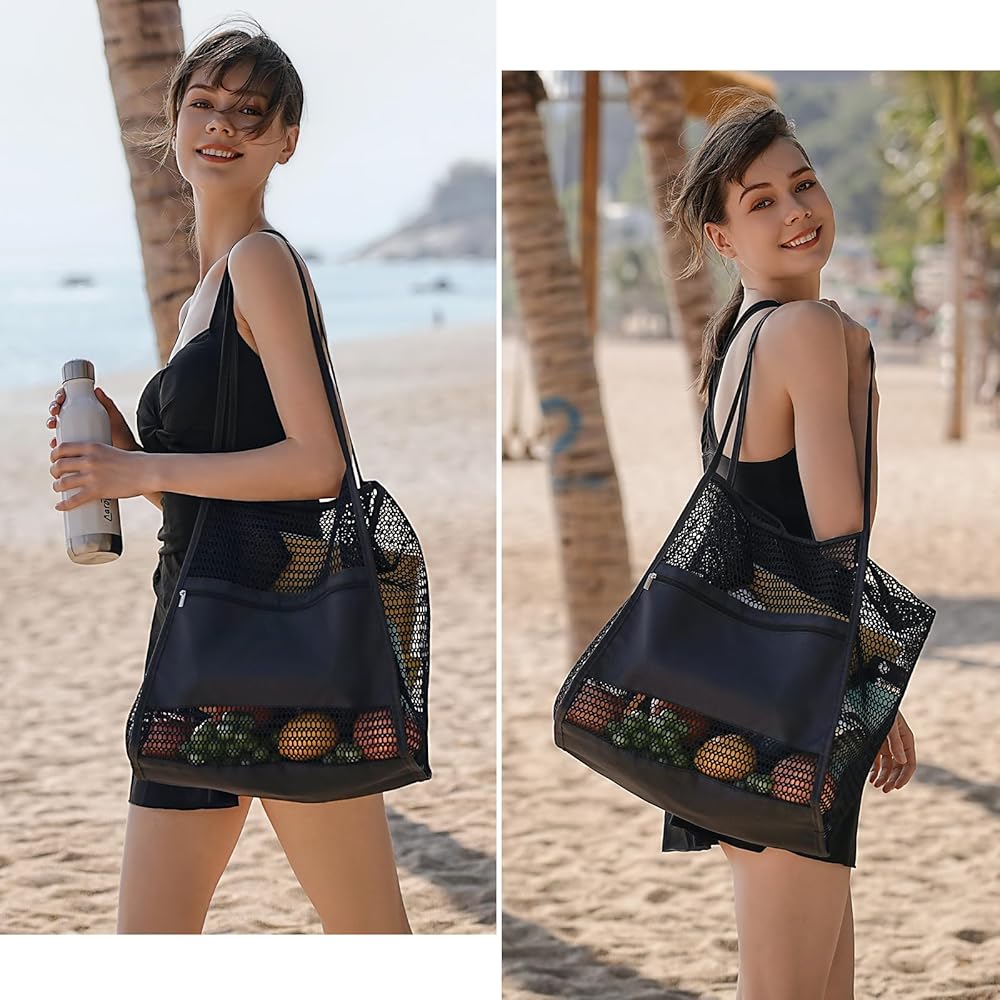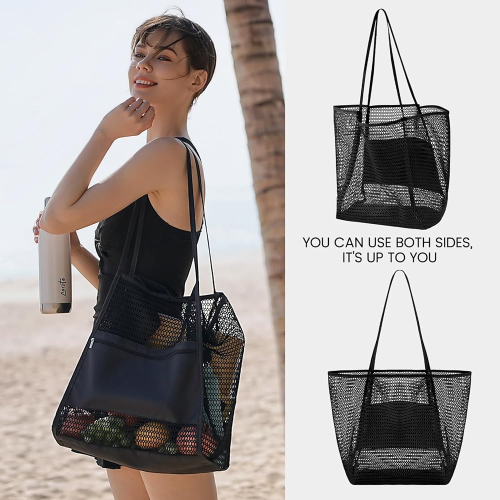 HIGH QUALITY - This beach tote bag is made of tear-resistant nylon, polyester materials with a diamond mesh design that is strong enough to bear 25+ lbs. Ensures longer lifespan and durable use. You don't have to worry about safety.