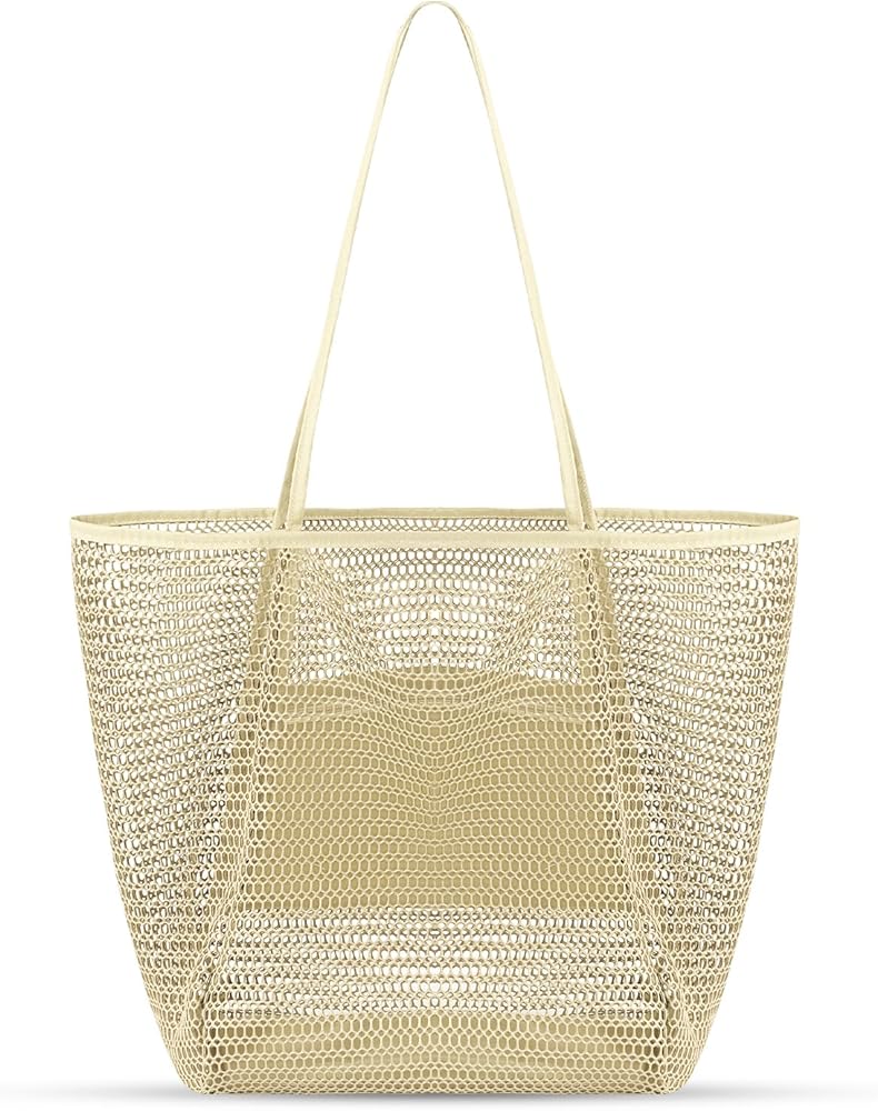 👜High Quality Material - The beach bag is made of high-quality nylon and polyester fiber materials, lightweight and sturdy. Adopting diamond mesh and breathable design, it can keep the interior dry and prevent towels and clothes from being constantly damp, leading to mold or unpleasant odors. The waterproof and thickened bottom can protect your items from contact with damp sand or floors.