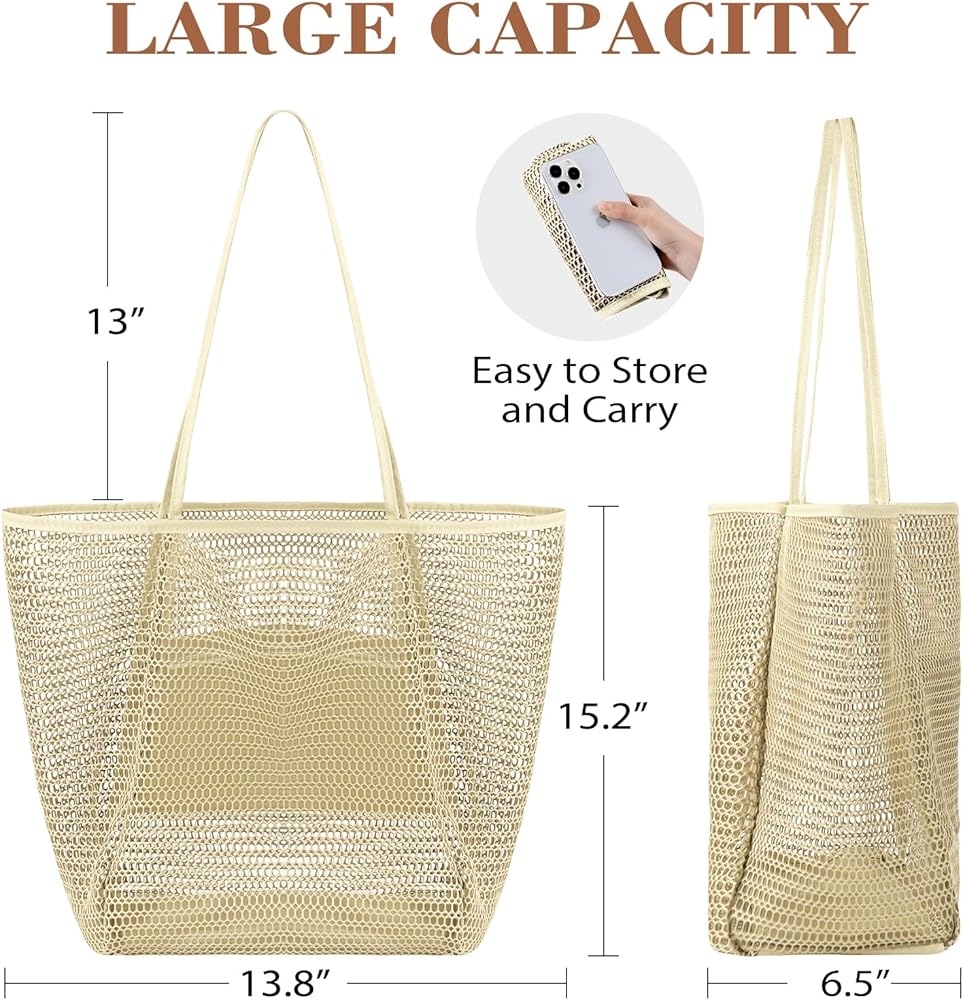👜Practical Design - The beach tote adopts a double-layer mesh design, which is sturdy and long-lating. The shoulder straps are soft and comfortable to carry. The large capacity main pocket can meet your travel needs, and is equipped with an internal zippered pocket for storing valuable items such as wallets, keys, and phones. All these pockets make organizing work simple and practical.