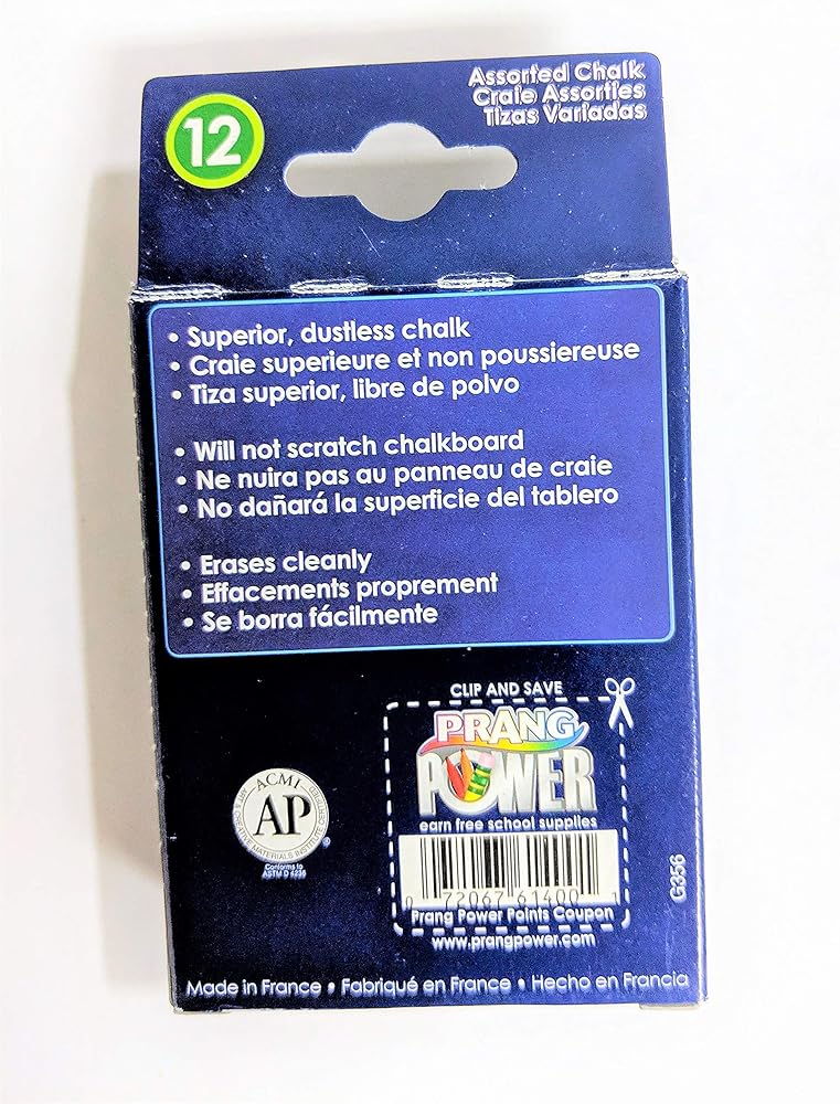 Prang Pastello Paper Chalk, Square, Assorted Colors, 12 Count