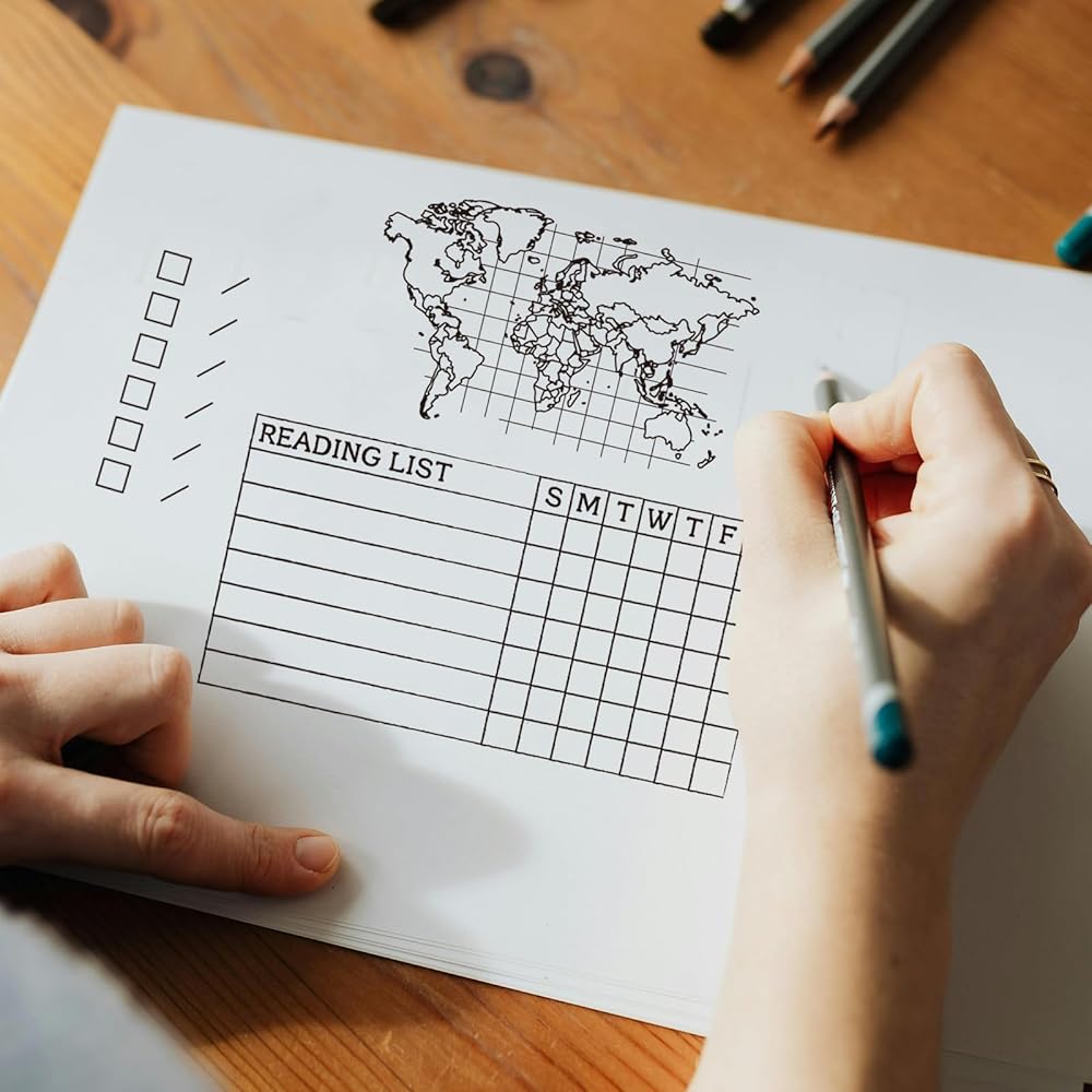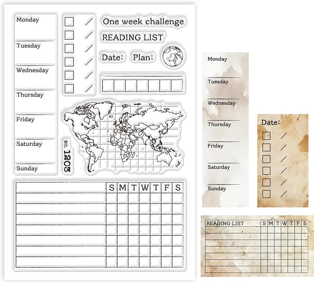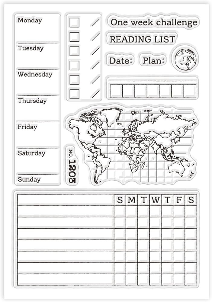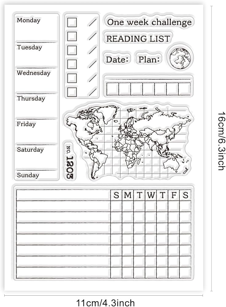 GLOBLELAND Weekly Planner Clear Stamps World Map Silicone Clear Stamp Journal Transparent Stamps for DIY Scrapbooking and Cards Making Photo Album Journal 6.3x4.33inch