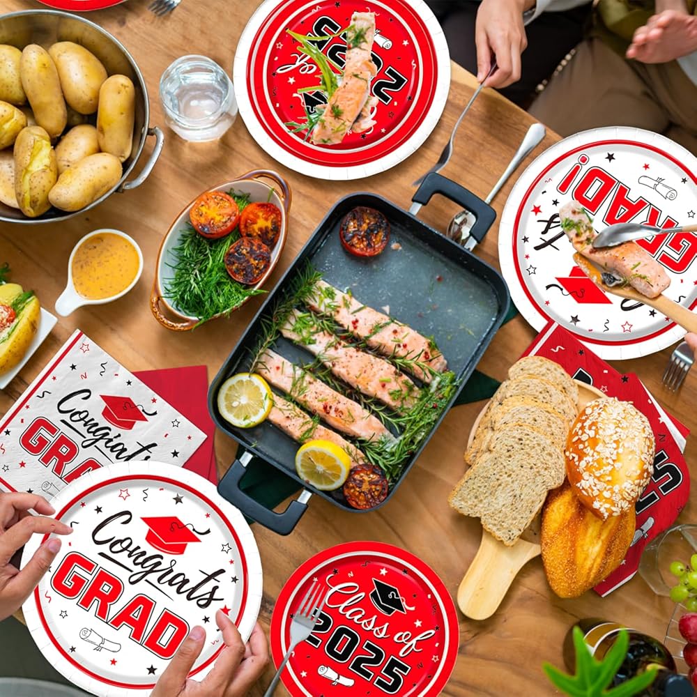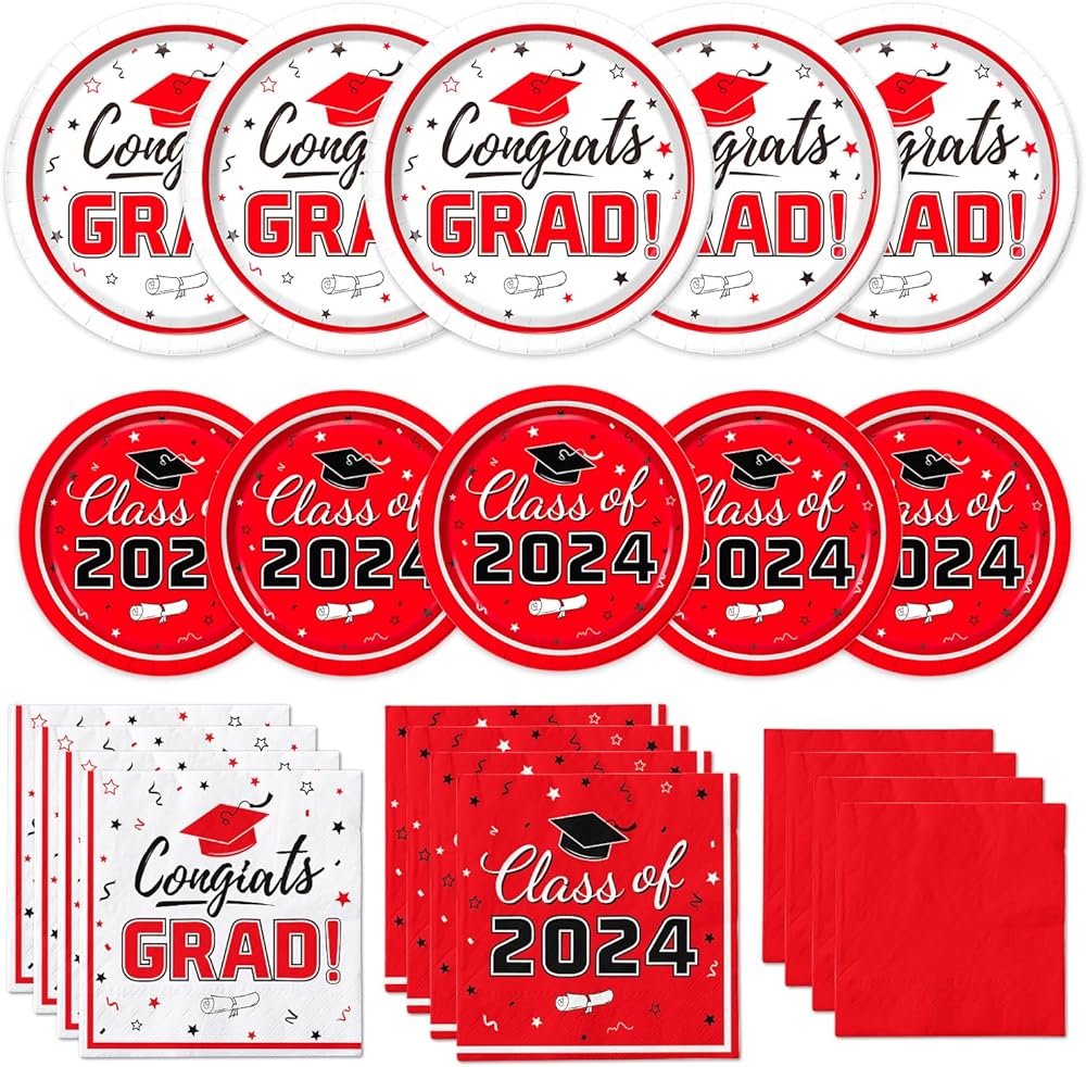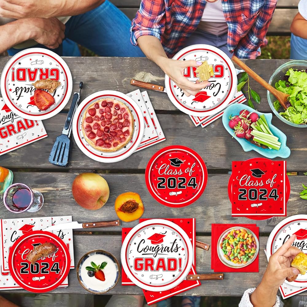 Package Includes: The maroon graduation decorations set features 50 each of 9-inch graduation plates, 7-inch graduation paper plates, graduation napkins and cocktail napkins. Everything you need for an unforgettable Class of 2024 celebration is included in our graduation party decorations. Elevate your grad's special day with this comprehensive set!