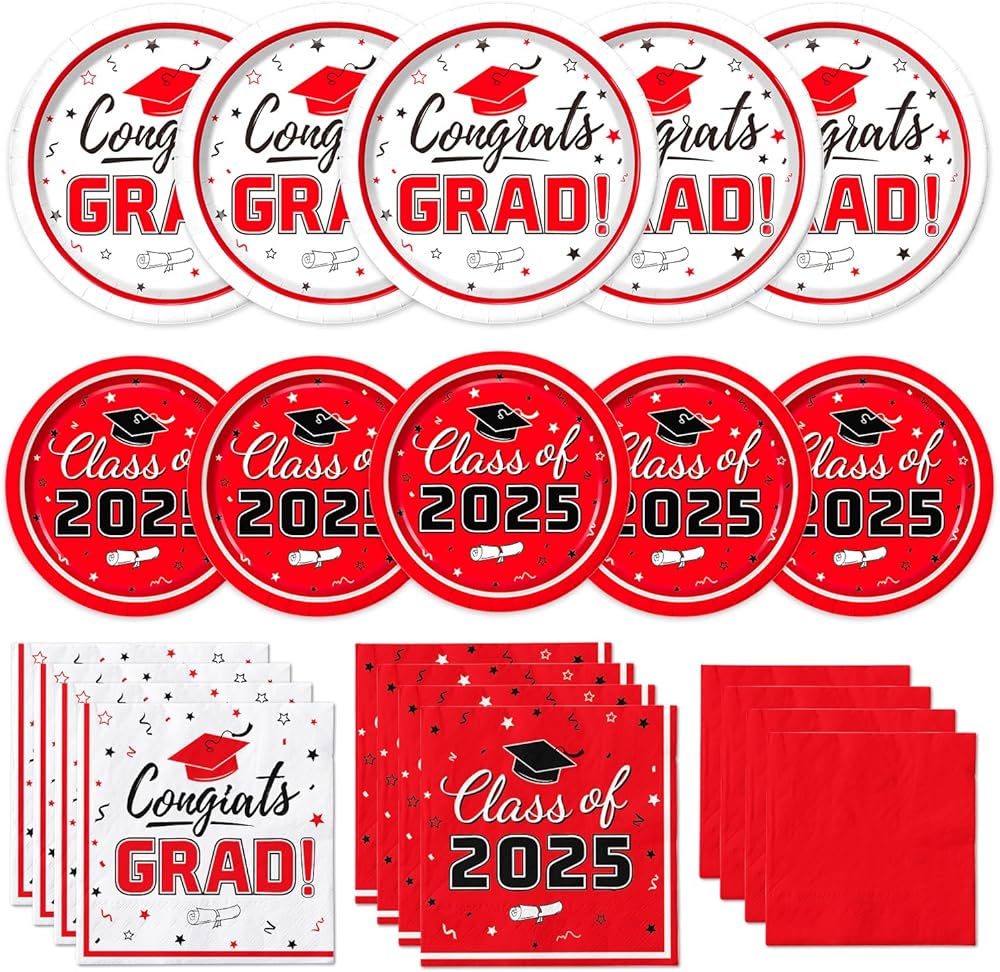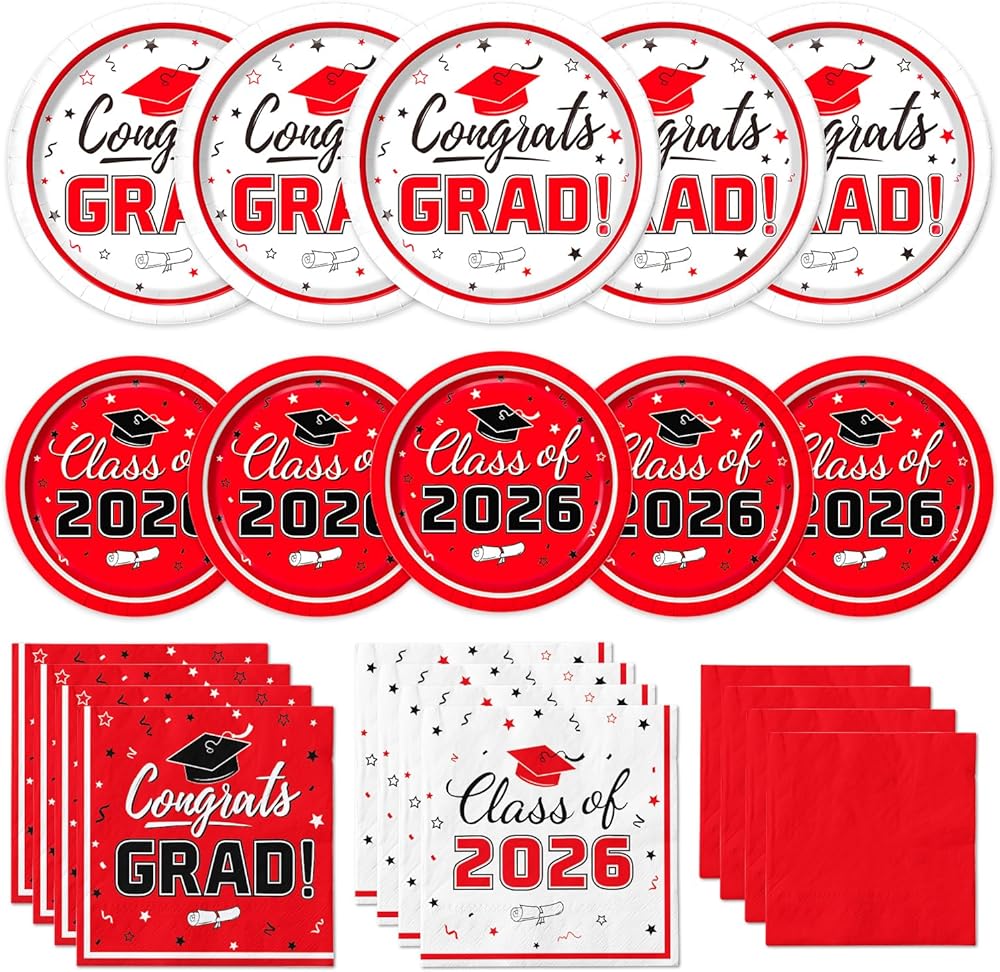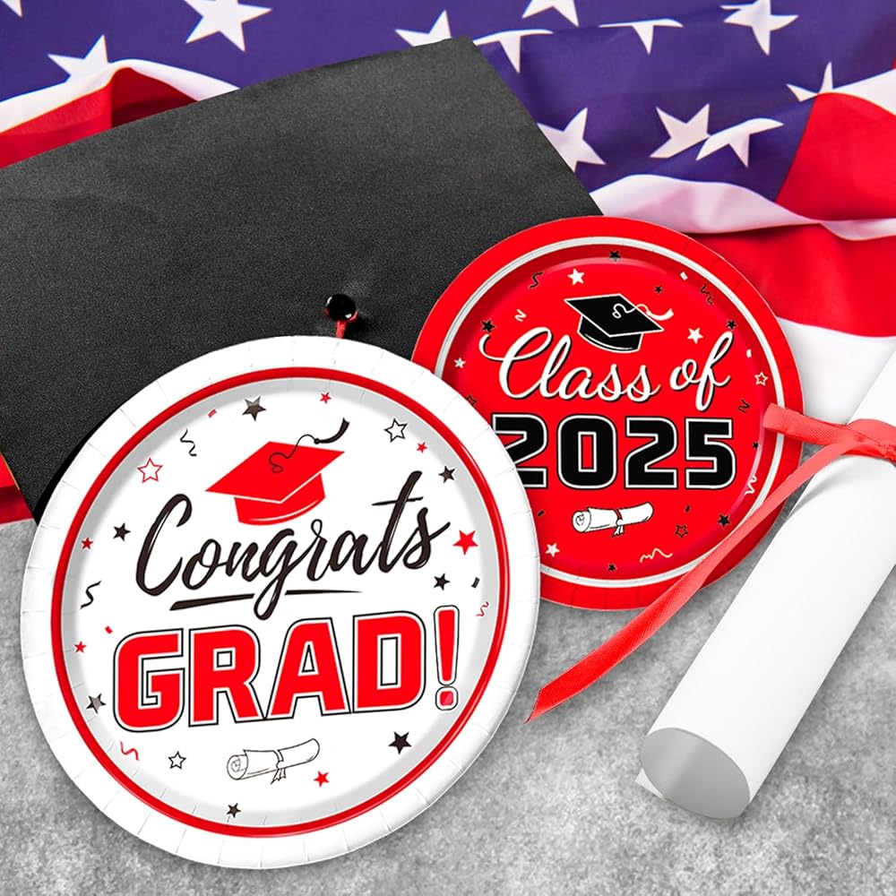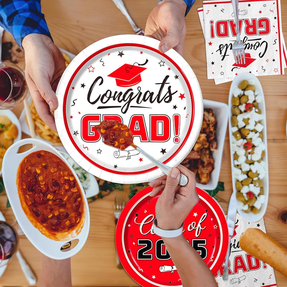 Package Includes: The maroon graduation decorations set features 50 each of 9-inch graduation plates, 7-inch graduation paper plates, graduation napkins and cocktail napkins. Everything you need for an unforgettable Class of 2024 celebration is included in our graduation party decorations. Elevate your grad's special day with this comprehensive set!