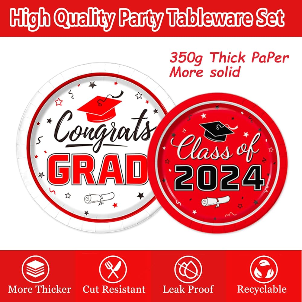 Quality Safe Material: The disposable paper plates, napkins, and cups are made of thick paper material and are all printed with food-grade water-based ink, suitable for food contact. The tablecloth is made of high-quality plastic, vibrant and durable without easily fading, perfect for a graduation-themed party, bringing you a unique and flawless celebration.