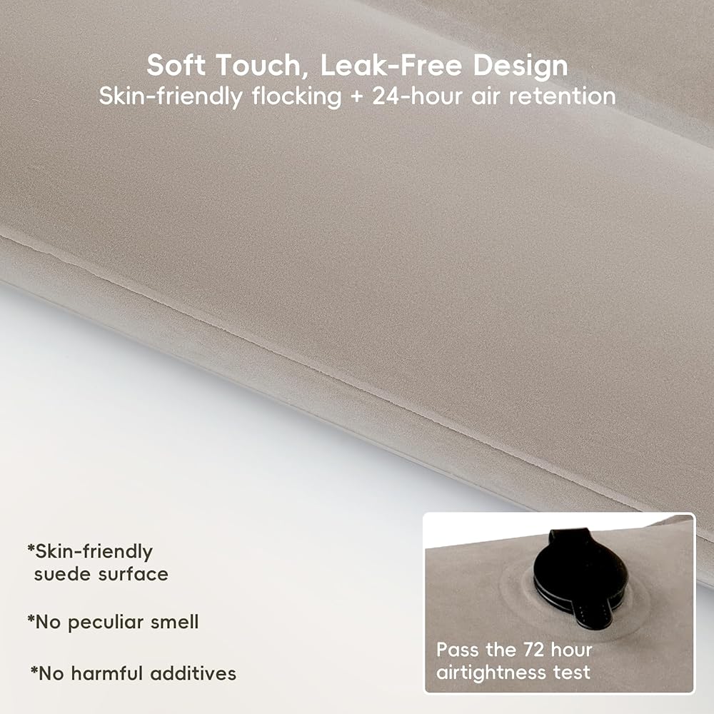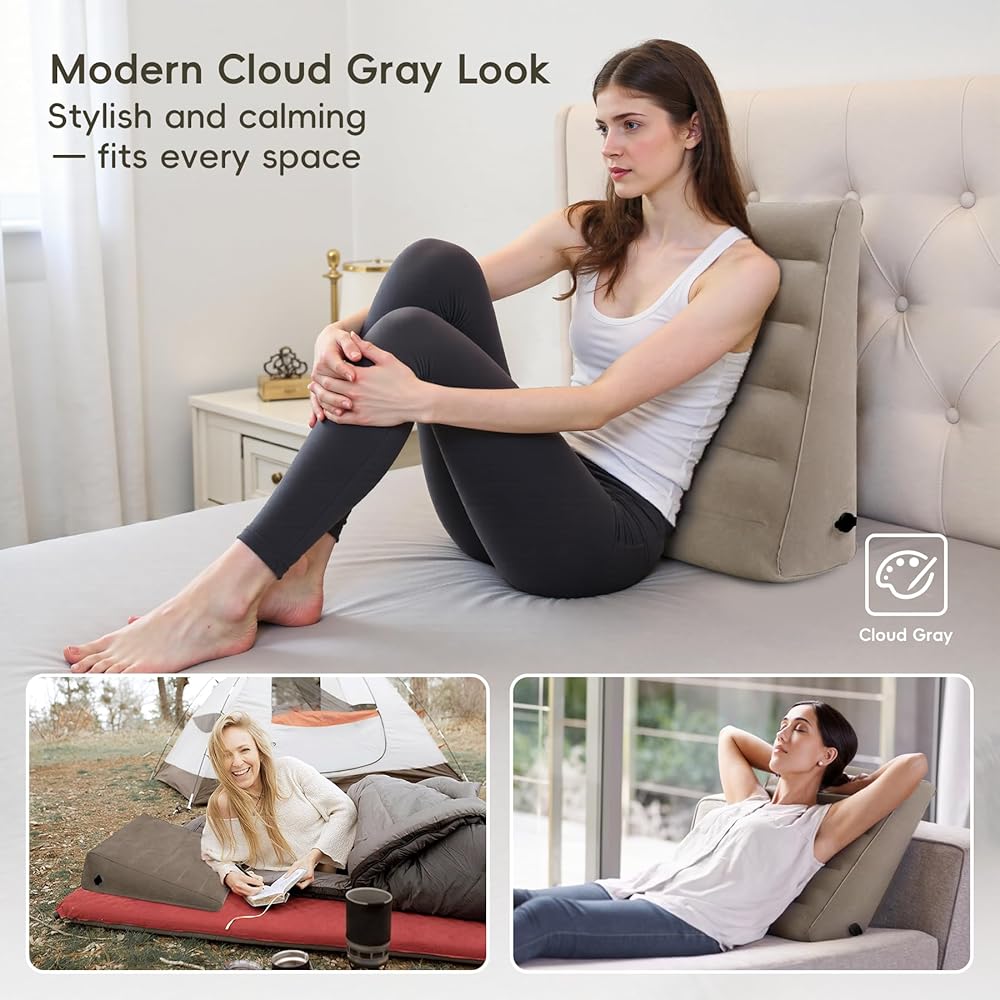WEY&FLY Inflatable Wedge Pillow for Traveling – Lightweight Sleeping Support, Portable Camping Travel Wedge for Bed or Back, Fast Valve Inflation, 24.8" x 23.6" x 7.1" (Cloud Gray)