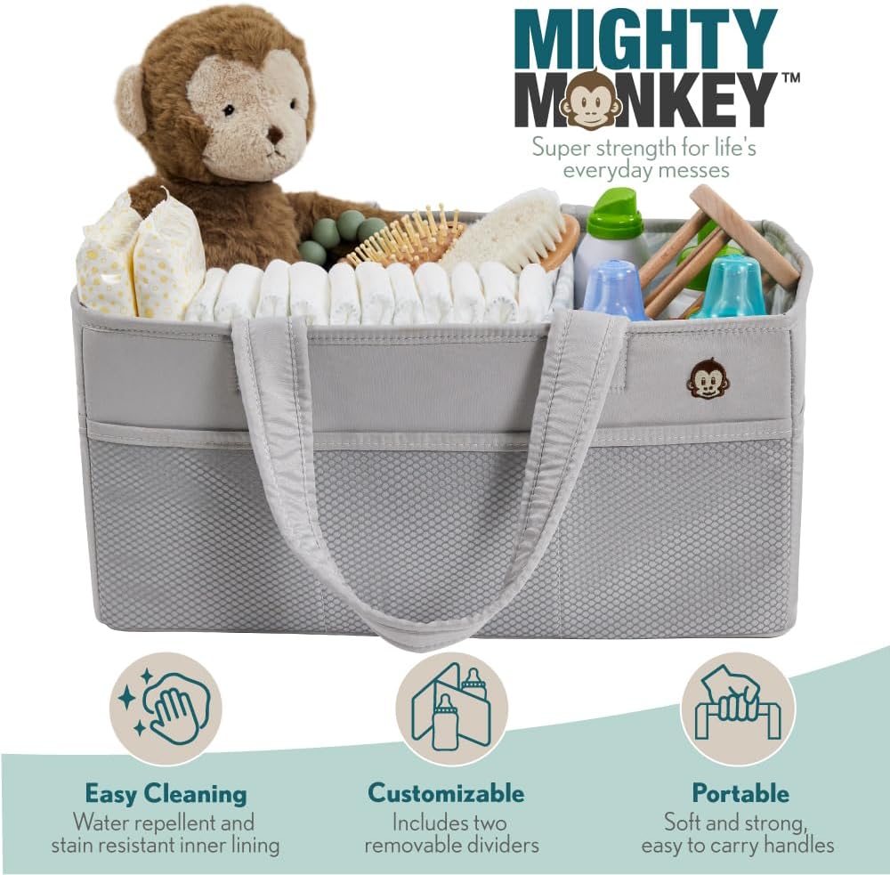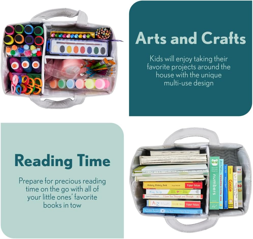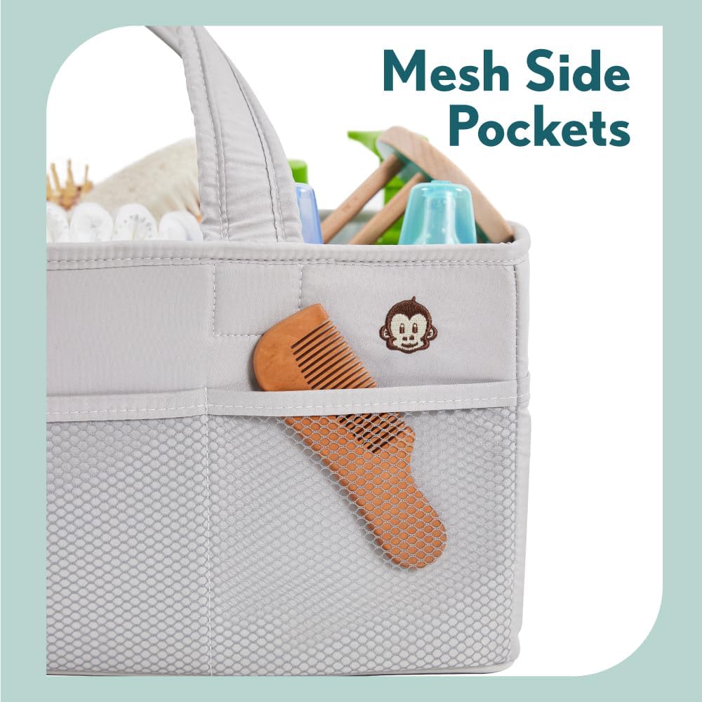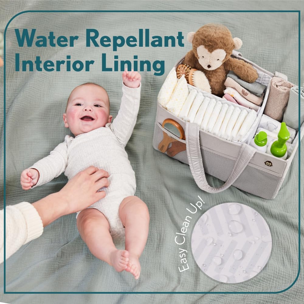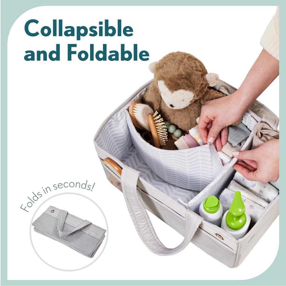 PORTABLE AND EASY TO CARRY: effortlessly carry all baby essentials from room to room with oversized and comfortable handles; perfect for busy parents on the move; maximize space with caddy's foldable design; ideal for neat storage when not in use