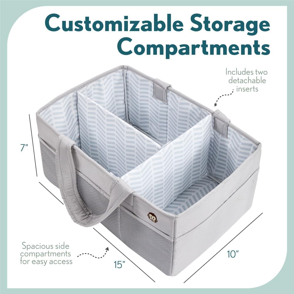 CUSTOMIZABLE STORAGE COMPARTMENTS: created to fit all your personal needs; includes two detachable dividers; easily arrange your caddy to up to three separate compartments for versatility all parents need