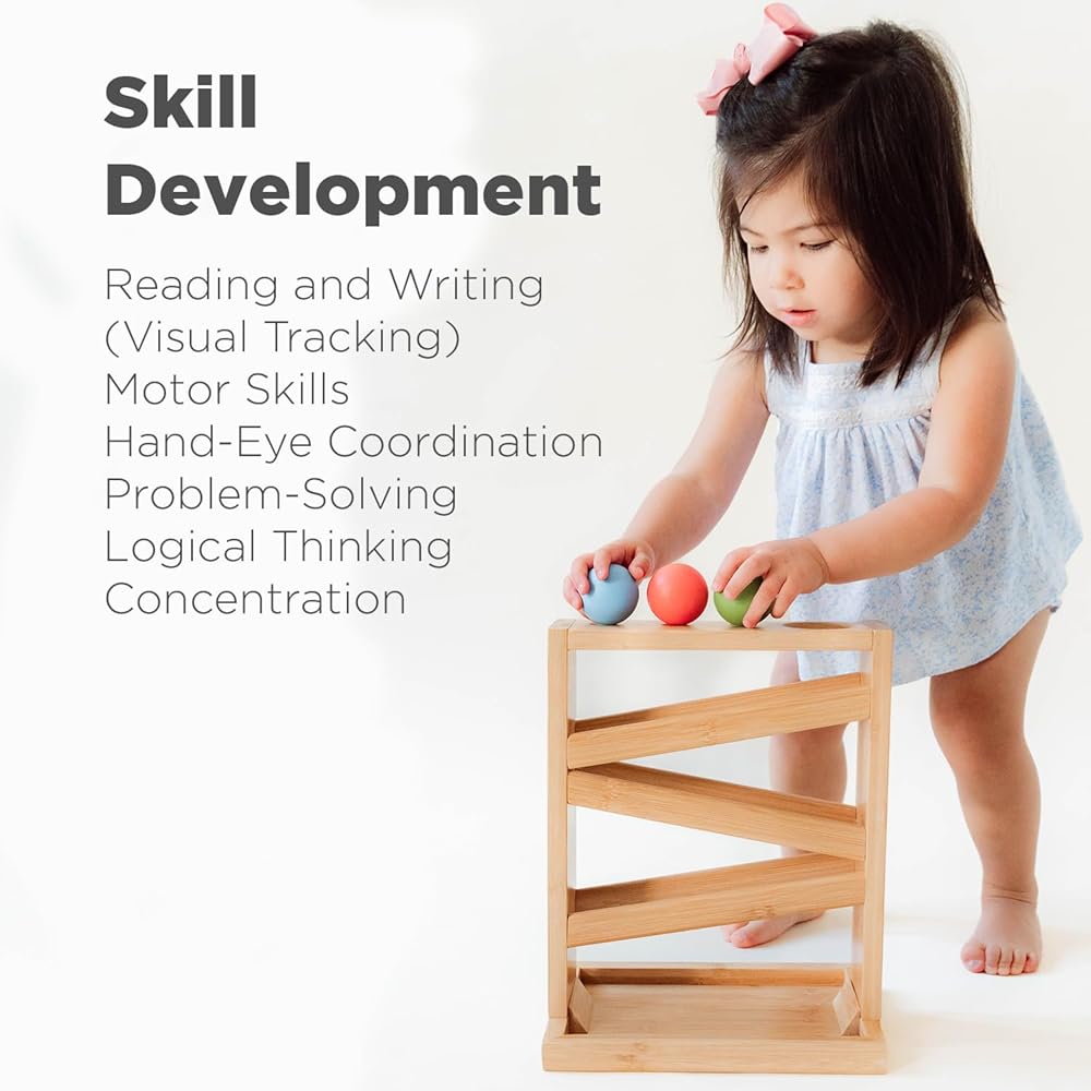 MONTESSORI TEACHER APPROVED: This wooden ball tracker is designed to develop your child's left to right and right to left tracking, fine and gross motor planning, coordination, problem-solving, logical thinking, and concentration. It is perfect for a Montessori home or classroom.