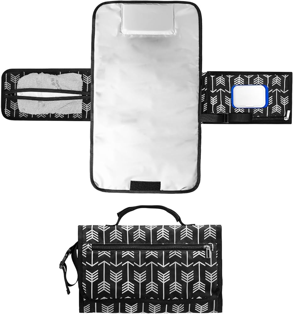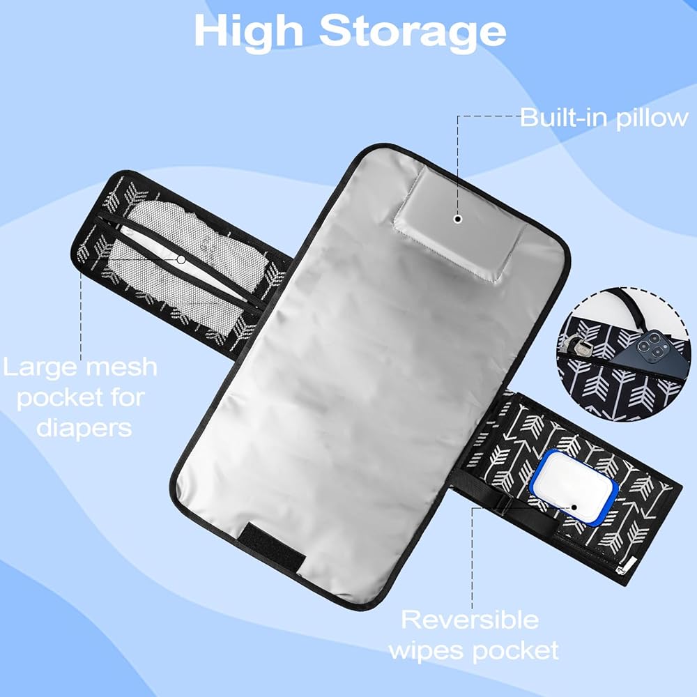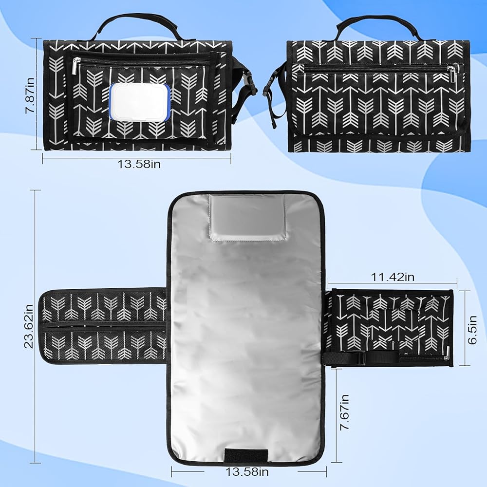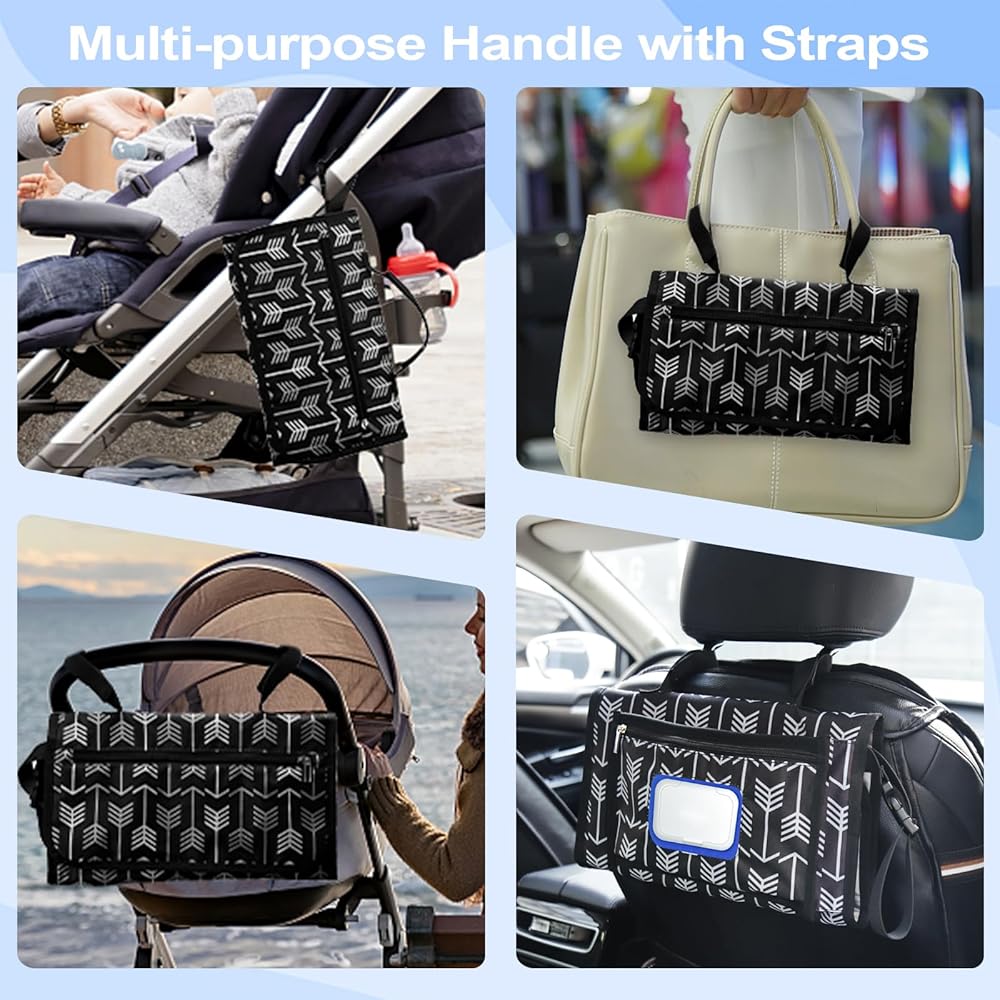 PRACTICAL LIFESAVER - Portable changing pad comes with a smart wipes pocket, a diaper pocket(10" x 6"), and a zip pocket on the front so you have plenty of room for your baby's essentials. Plus, it opens easily so you can do it with one hand for faster, more efficient diaper changes. The design of the smart wipe pocket and zipper pocket make it a very practical and functional changing pad, and it comes in handy when your baby needs to be changed in a public place.