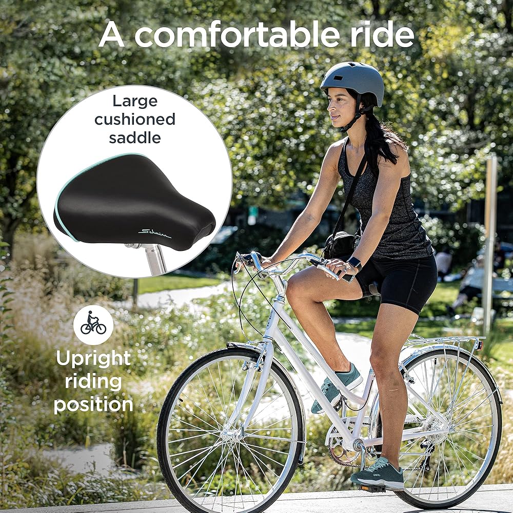 Schwinn Wayfarer Adult Hybrid Bike, Mens and Womens, Step-Over or Step-Through Frame Options, 7-Speed Drivetrain, Rear Rack, 700C Wheels