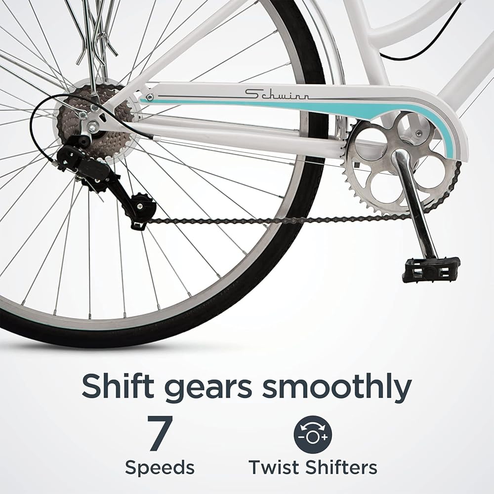 - Seamless gear transitions with the 7-speed twist shifters, conveniently placed rear cargo rack provides ample storage