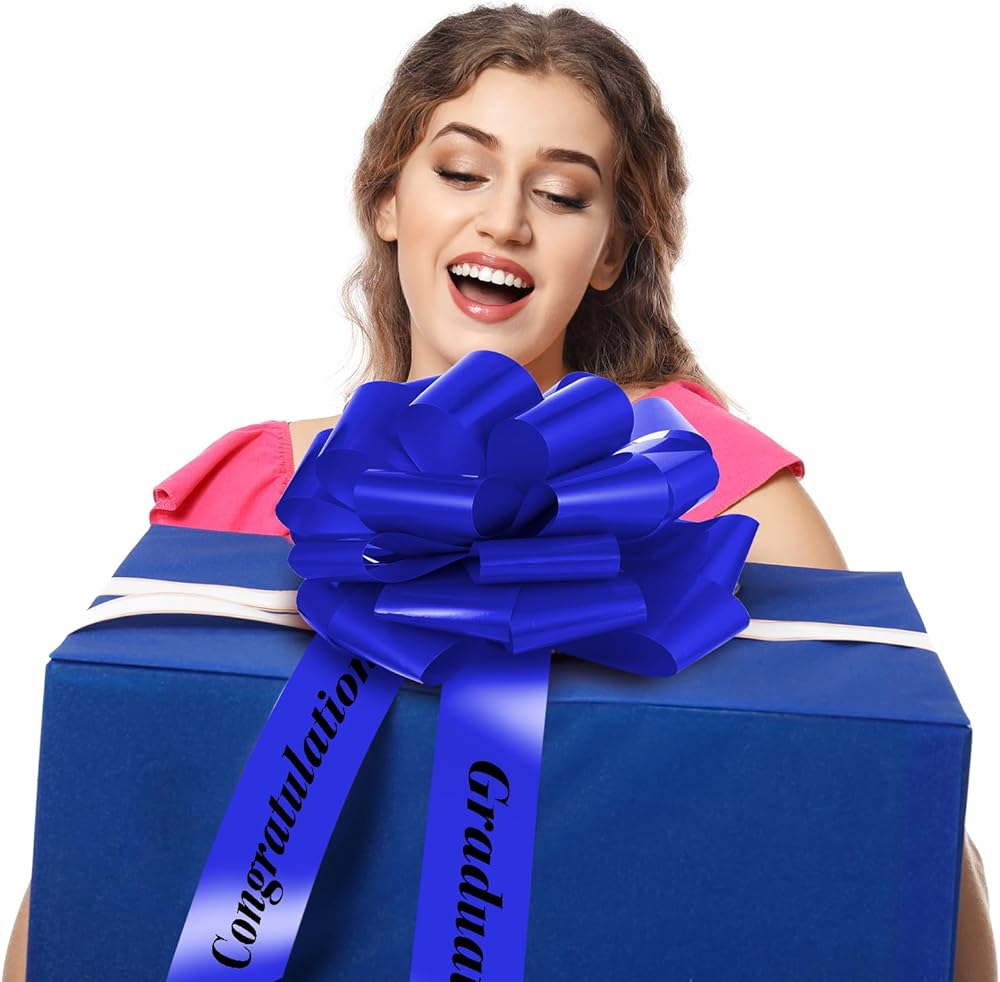 20 Inch congratulations graduate 2025 car bow decoration pull bow ribbon large wrapping bow ornament for Christmas birthday party car decoration (orange )