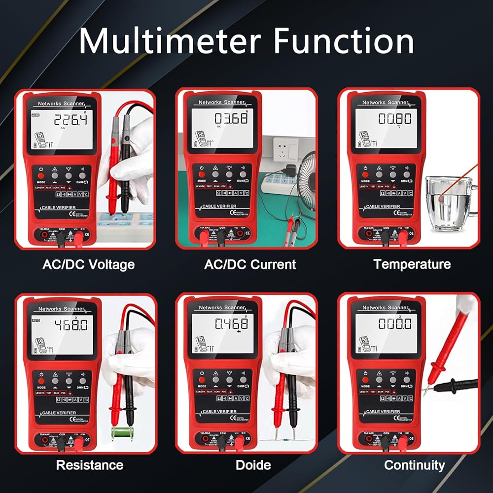 Digital Multimeter Tester: Capable of measuring AC voltage and current, resistance, continuity, diode testing, and temperature. With Stable performance, high precision, rock solid reliability, a crystal clear display, and overload protection.