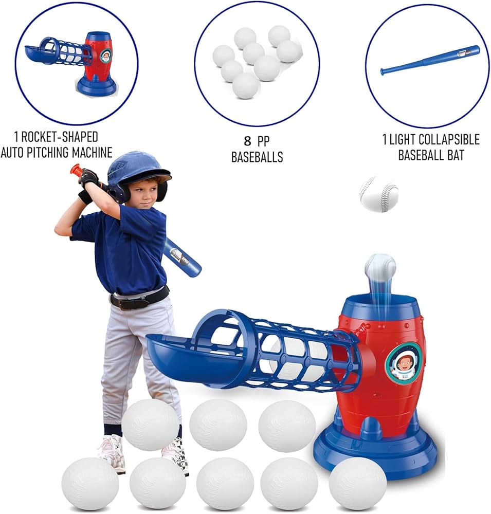 Baseball Pitching Machine for kids with 8 Balls: This automatic baseball softball pitching machine is perfect for kids learning to hit live pitching all by themselves without needing a pitcher.