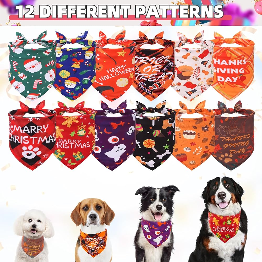 3 Pack: You will receive 3 pieces of dog bandanas with different patterns. These dog triangle scarfs are machine washable. You can dress your dog in different bandanas for different festivals.