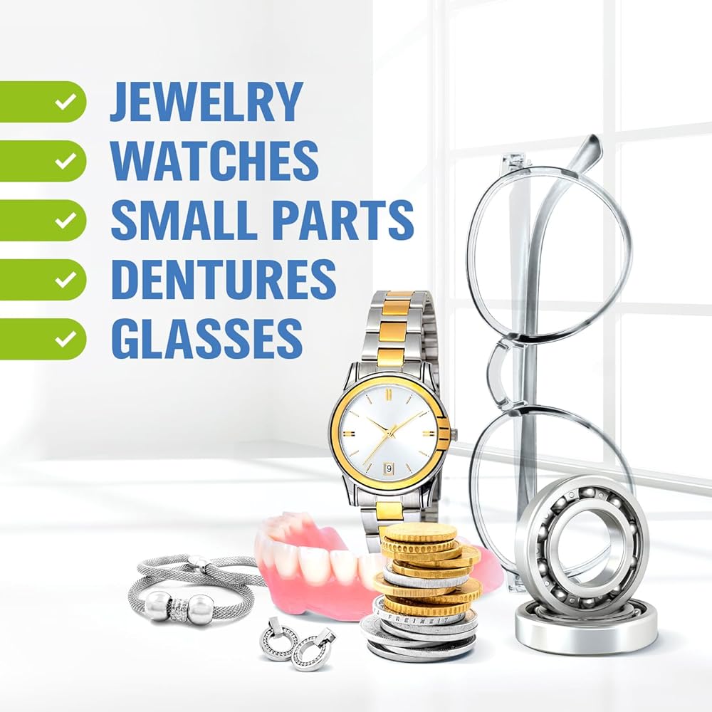 Cleaning concentrate for cleaning glasses, jewelry, silver, gold, coins, watches, gemstones and other waterproof mechanical components.