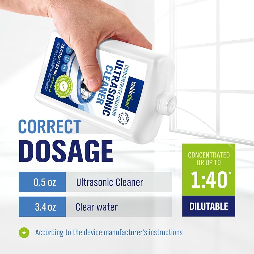 Ultrasonic cleaner solution concentrate 25 ounces cleaning liquid for jewelry, silver, gem, dental and glasses. Use the solution 1:40 ratio with water.
