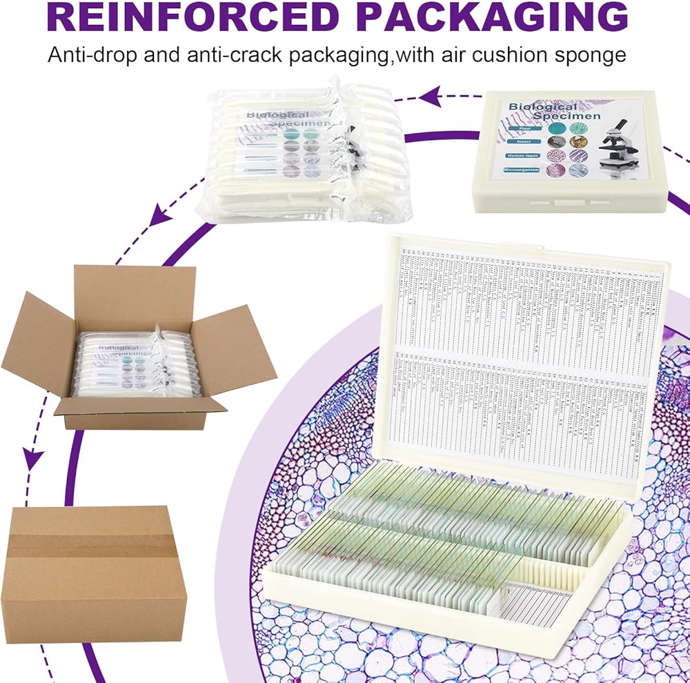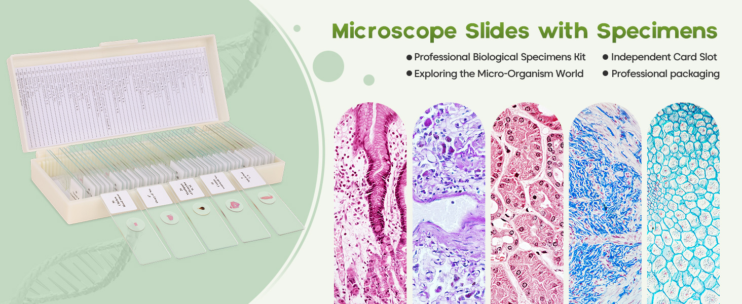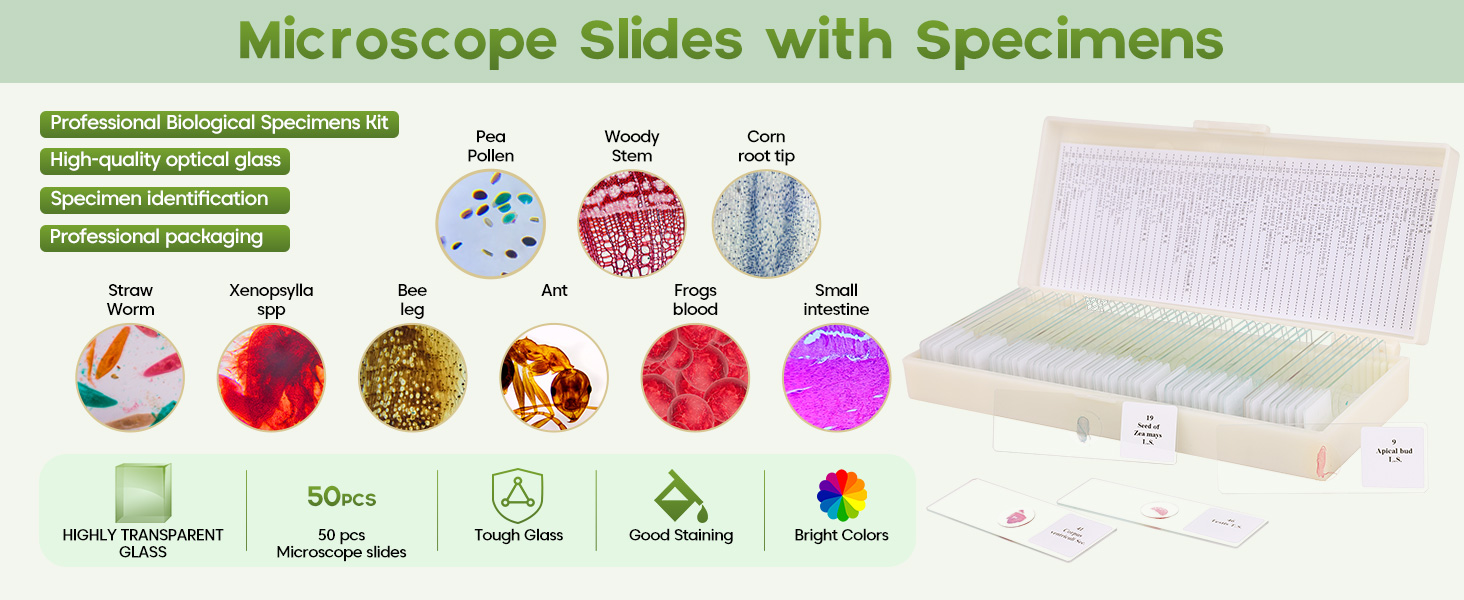 Preloaded specimens are made of high-quality optical glass, with high light transmission and no impurities, provides clear images,sealed with a coverslip to preserve