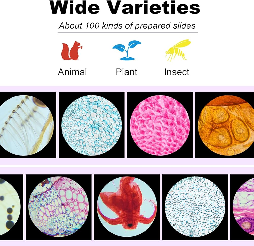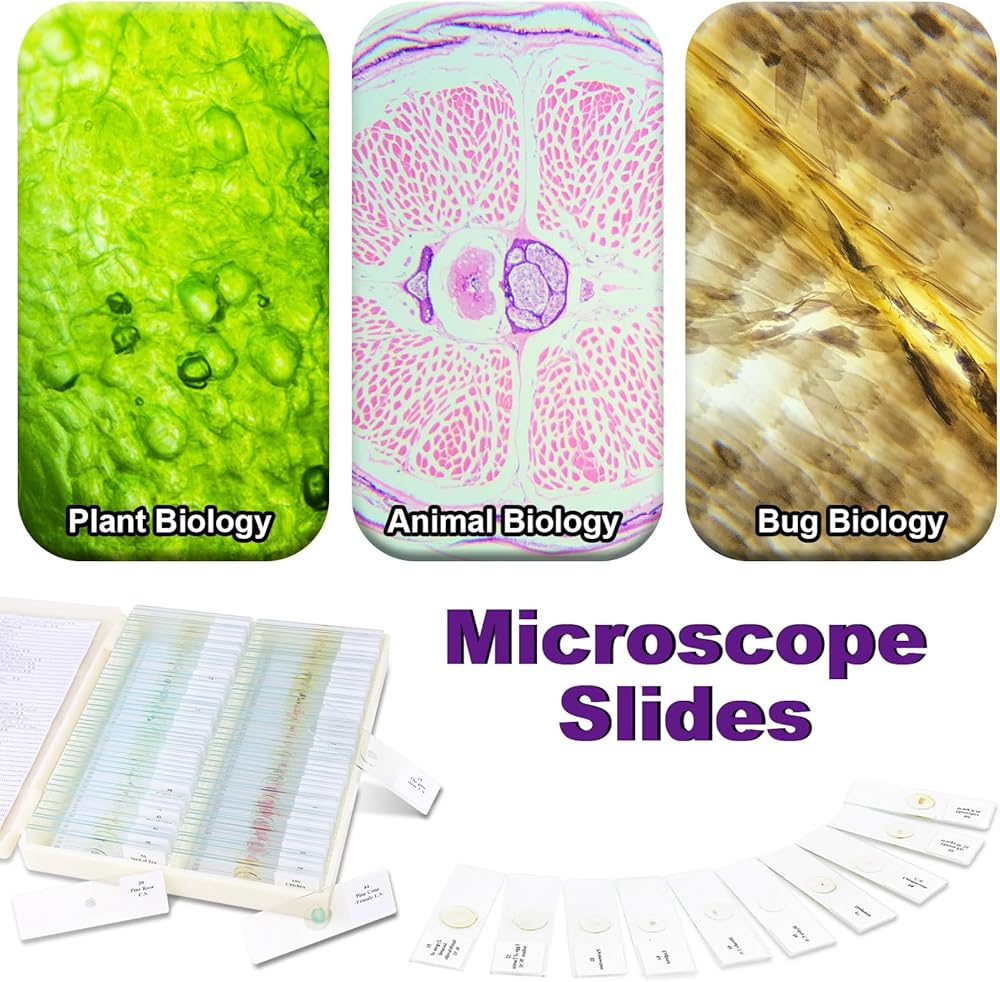 100 Pcs Microscope Slides with Specimens for Kids,Prepared Microscope Slides for Kids,Prepared Slides for Microscope,Microscope with Slides for Student Adults, Including Insect, Animal, Human Tissue