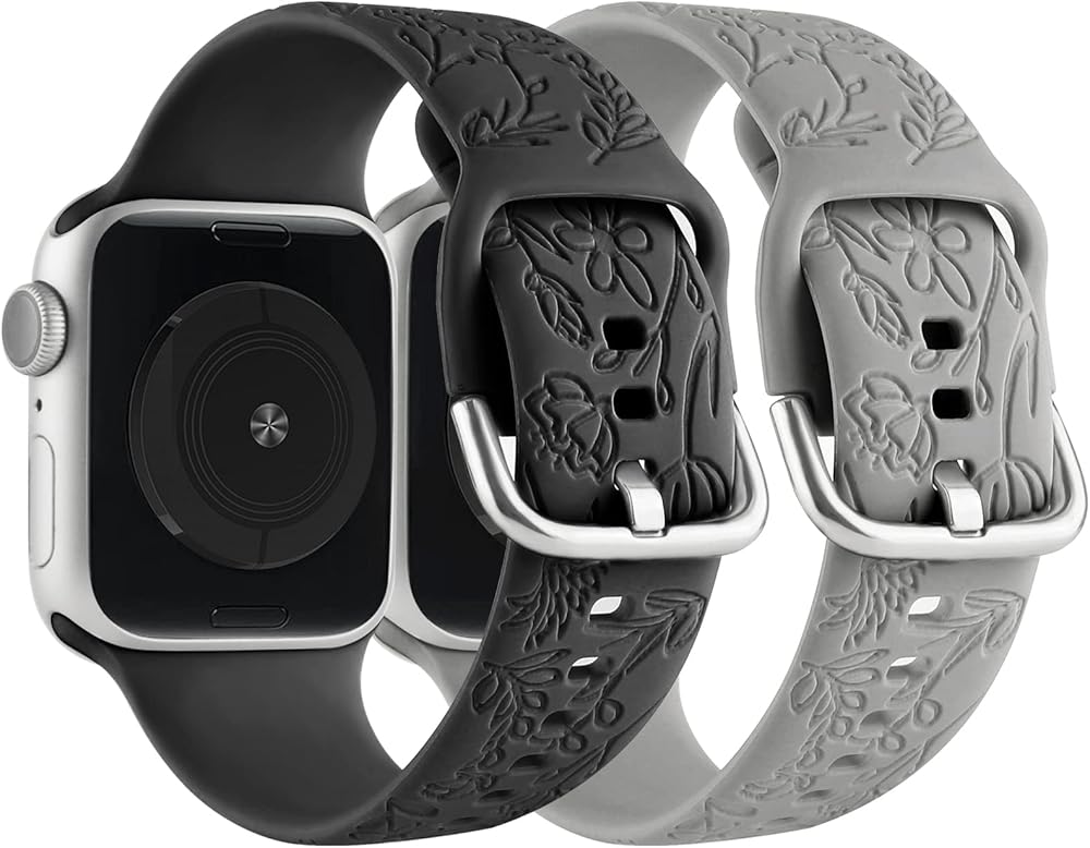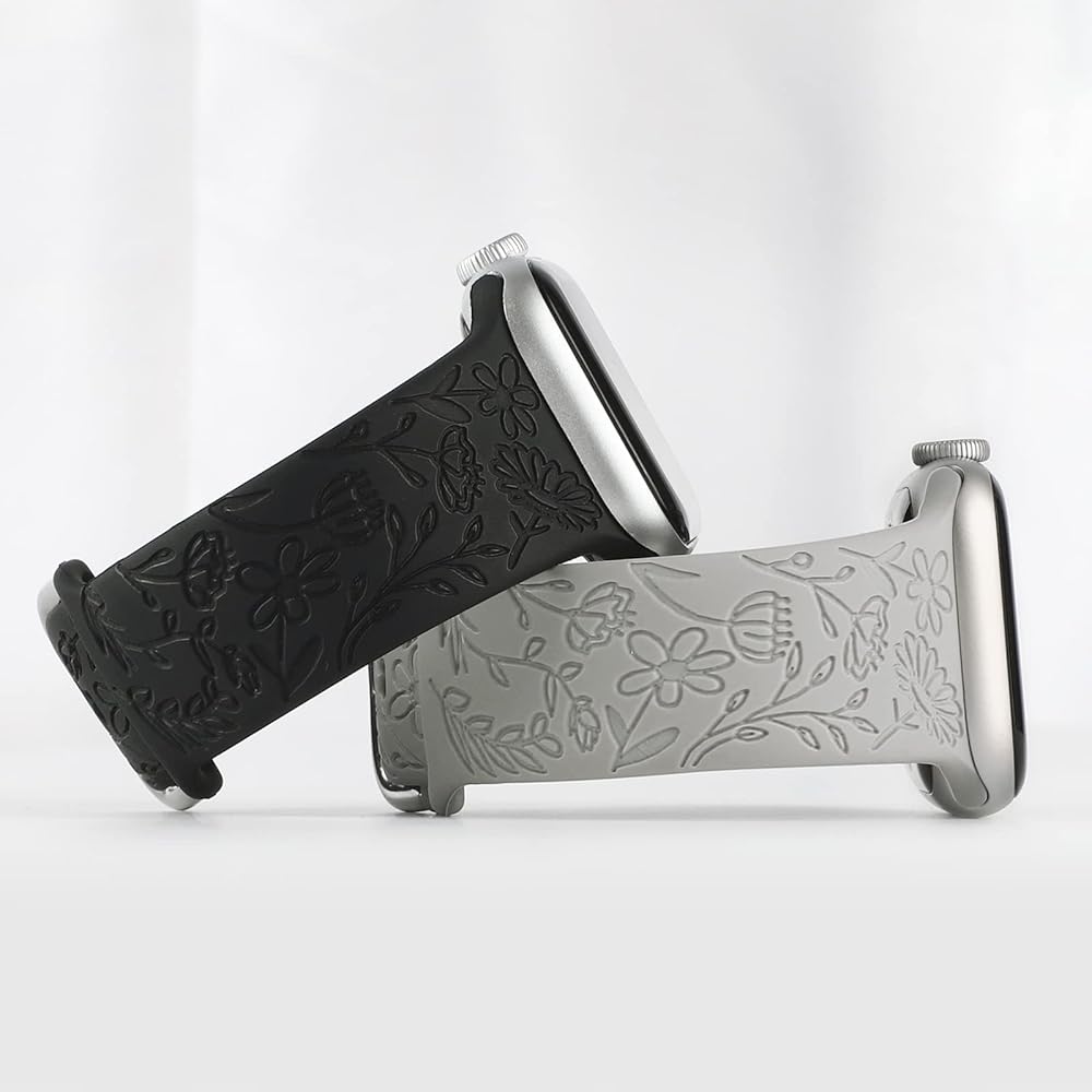 Patents Product! Flowers and Leaf Plants Print Engraved Design: Floral Engraving bands compatible with Apple watch smartwatch band 38mm/40mm/41mm, Made of the premium soft and durable silicone material, with the advanced laser carving, adjustable strap replacement wristband with classic clasp compatible with iWatch Series 8 7 6 5 4 3 2 1 SE