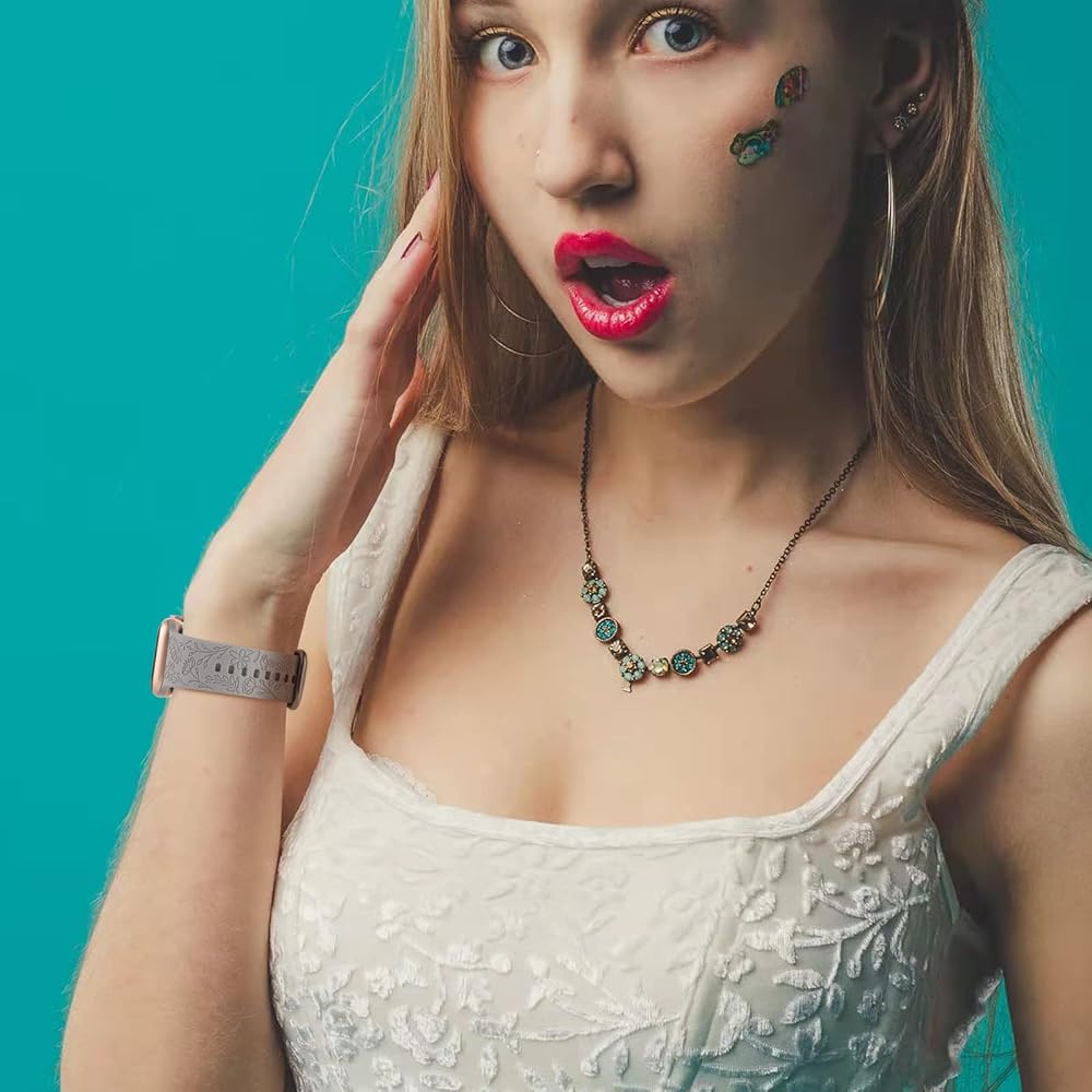 Secure and Easy to Install: Premium Soft Silicone with Exquisite Floral print engraved carving pattern. This beautiful and cute Engraved spring Summer Silicone watch bands with quick release spring lugs at both ends, locking onto your smart watch precisely and securely, avoid the watch from falling off or band being loose. no tool needed, easy to install or take off
