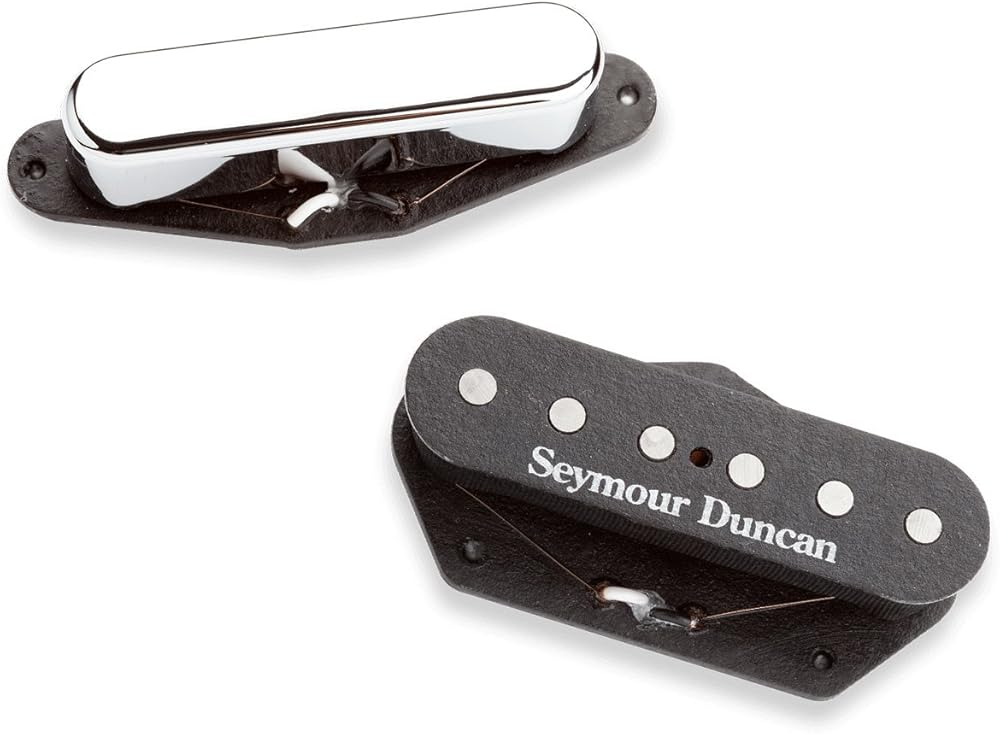 If you were to begin with a vintage rhythm pickup, wind it hotter, mellow the highs and enhance the midrange response, the result would be the Hot Tele Rhythm. The treble response is still articulate, but it is smoothed out by the more aggressive low end. Great for full sounding chords and sweet solo work. The Hot Tele Lead pickup uses flat, hand ground alnico 5 rod magnets and a special high output coil wind to give you enough midrange power to cut through like a humbucker. The absence of a steel bottom-plate gives you a fat, full punch in both the low and mid-range frequencies, yet it retains the muscular twang of a vintage style lead pickup. Great for Telecaster players who demand a more powerful lead tone, with extra presence and drive.