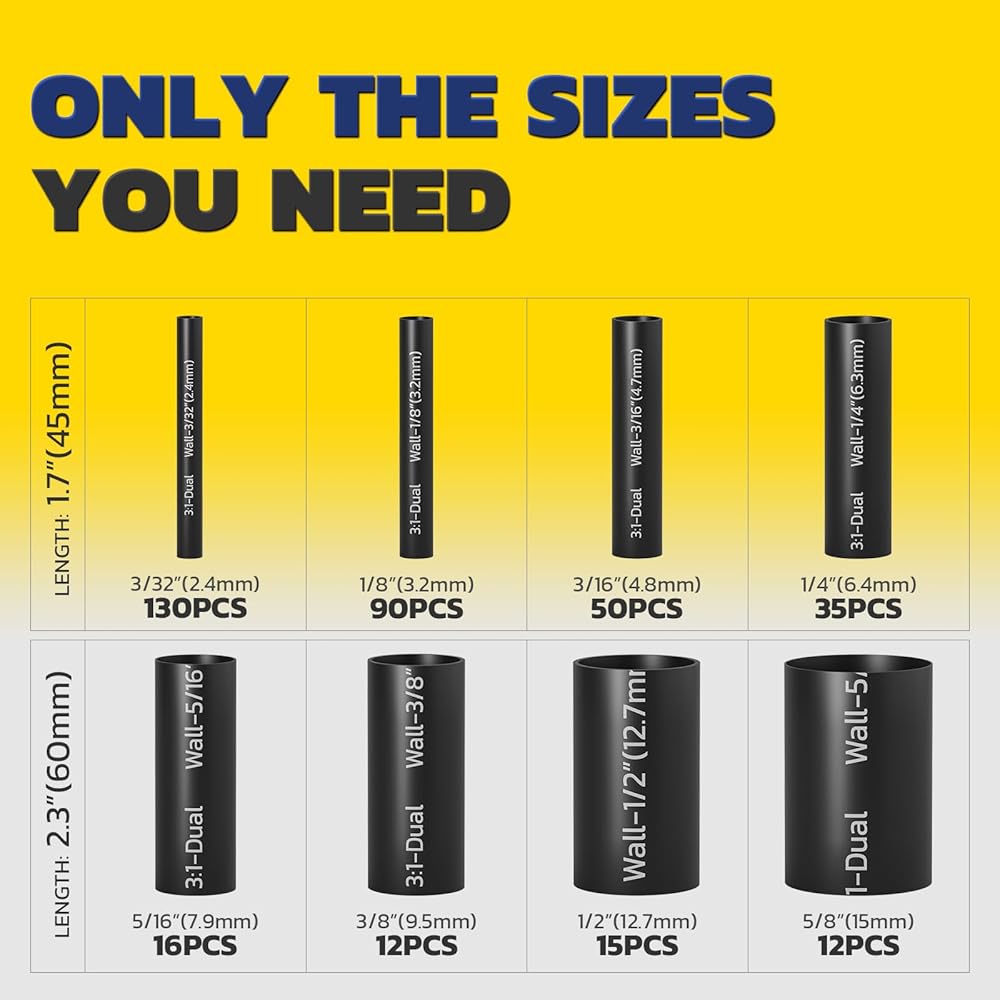 3:1 SHRINK RATIO: Effectively reducing diameter while providing superior insulation, shrink tubing provides a tight and secure seal for all your wire and cable connections.