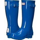 Hunter Kids Original Kids' Original Kids' Gloss Rain Boot is ready for all adventures before them! Featuring the traditional 28-piece design of Hunter's iconic Original rain boot, the natural rubber construction creates a comfortable fit for this welly style. The boots have leg heights that are graded to fit growing children. Knee-high fit insures that no moisture gets in. Comfort cushioned footbed. Reflective safety patches. Woven nylon lining. Calendered natural rubber outsole for sure footing. The brand advises that a white wax film may appear on the surface of the rubber boots and that it can be wiped off with a damp cloth. This "blooming" effect is not a defect. Blooming is caused when the boots are exposed to extreme temperatures or temperature swings and the wax helps prevent the rubber from weathering. Please note: Shaft heights will vary from size to size. For example, 11.00" shaft height is for a size 2 Youth.