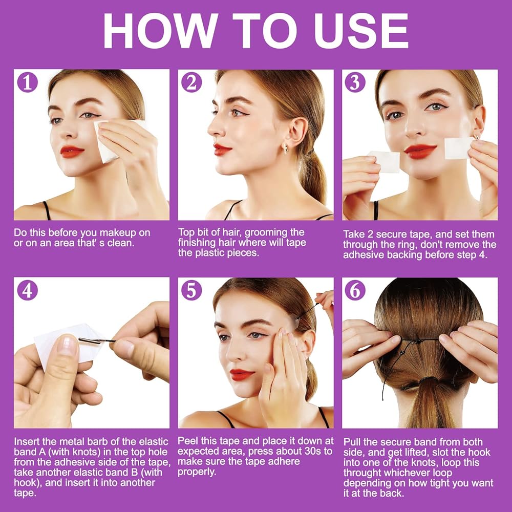 🍒🍒Easy to Use:This face lift tape with string is easy to use and easy to apply, just clean and dry your face, then attach the lifting strap to the end of this lift cord, then place it on your face and place the cords on the back of your head tie, you can make the facial lines smoother, firmer, and achieve a firming effect.