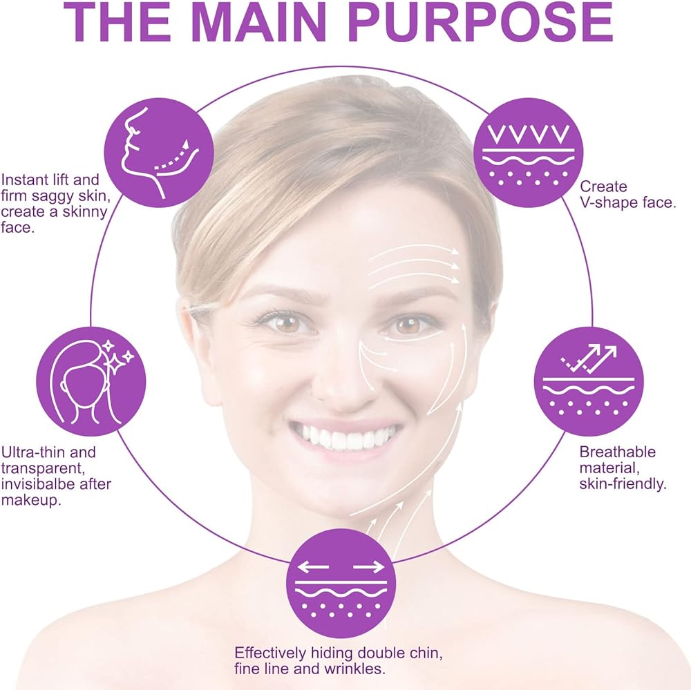 🍒🍒Multifunctional Face and Neck Tape Lifting Invisible:This V-Line face lift tape can also hide your facial fat and Facial Edema effectively relieving sagging skin, lightening fine lines, relieving double chin, or relieving nasolabial folds and other conditions, and visually reshape facial contours to make your skin look firmer and more youthful.