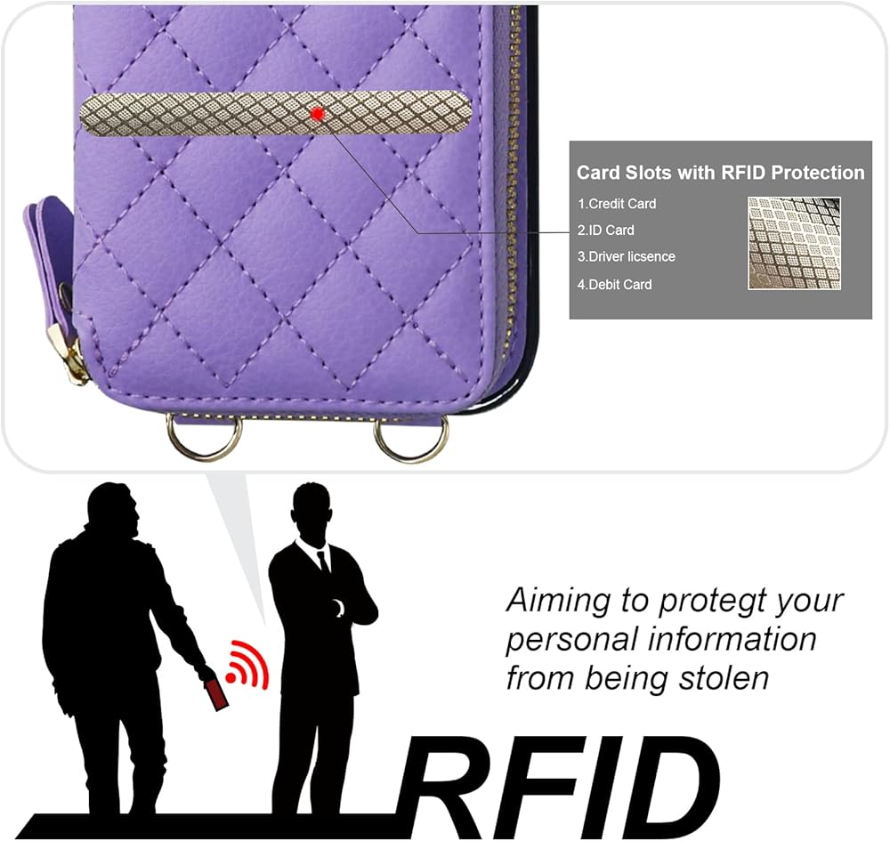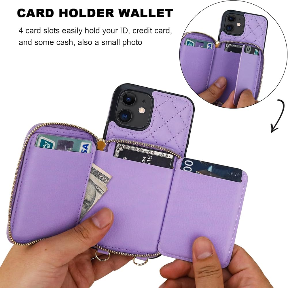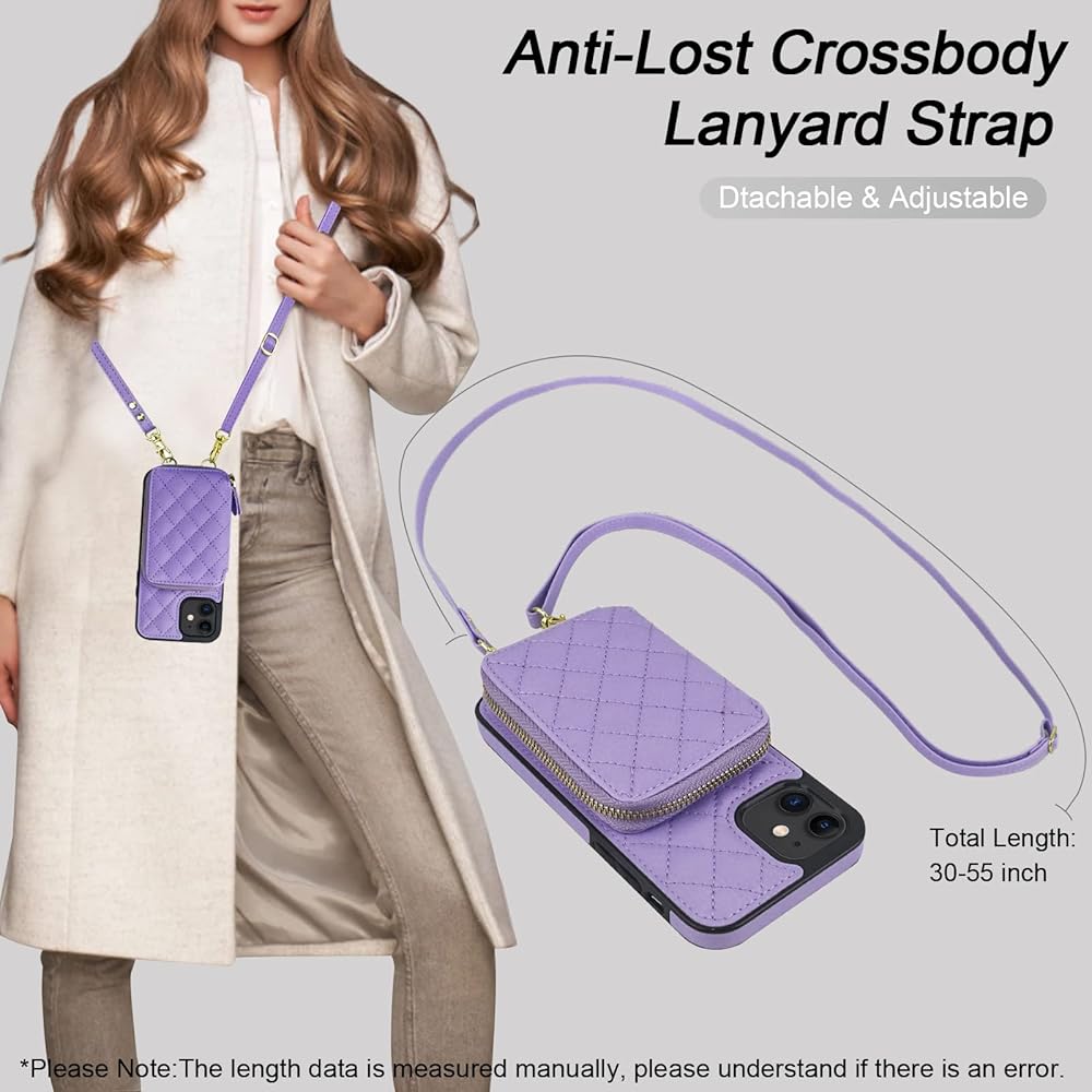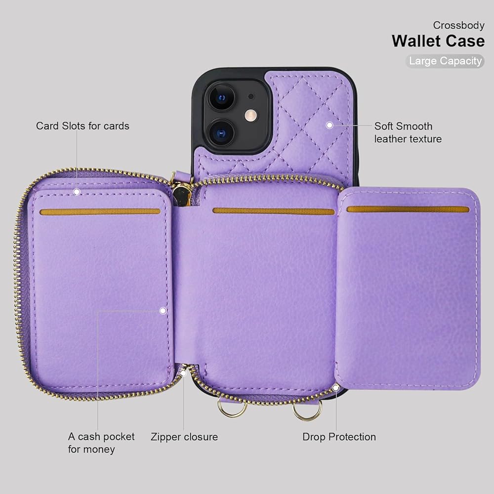 【Large Capacity Wallet Case】: This folio case wallet is equipped with many card slots as well as a cash pocket for the storage of little money and various cards such as ID card, debit card, driver's license, and so on. What's more, the zipper on the cross body case wallet can ensure the safety of your belongings.