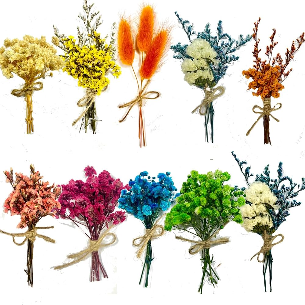 10Pcs Mini Dried Flowers Bouquet, Mixed Natural Dried Flowers Gypsophila Bouquets Boutonniere Table Centerpieces Birthday Cake Flowers for DIY Crafts