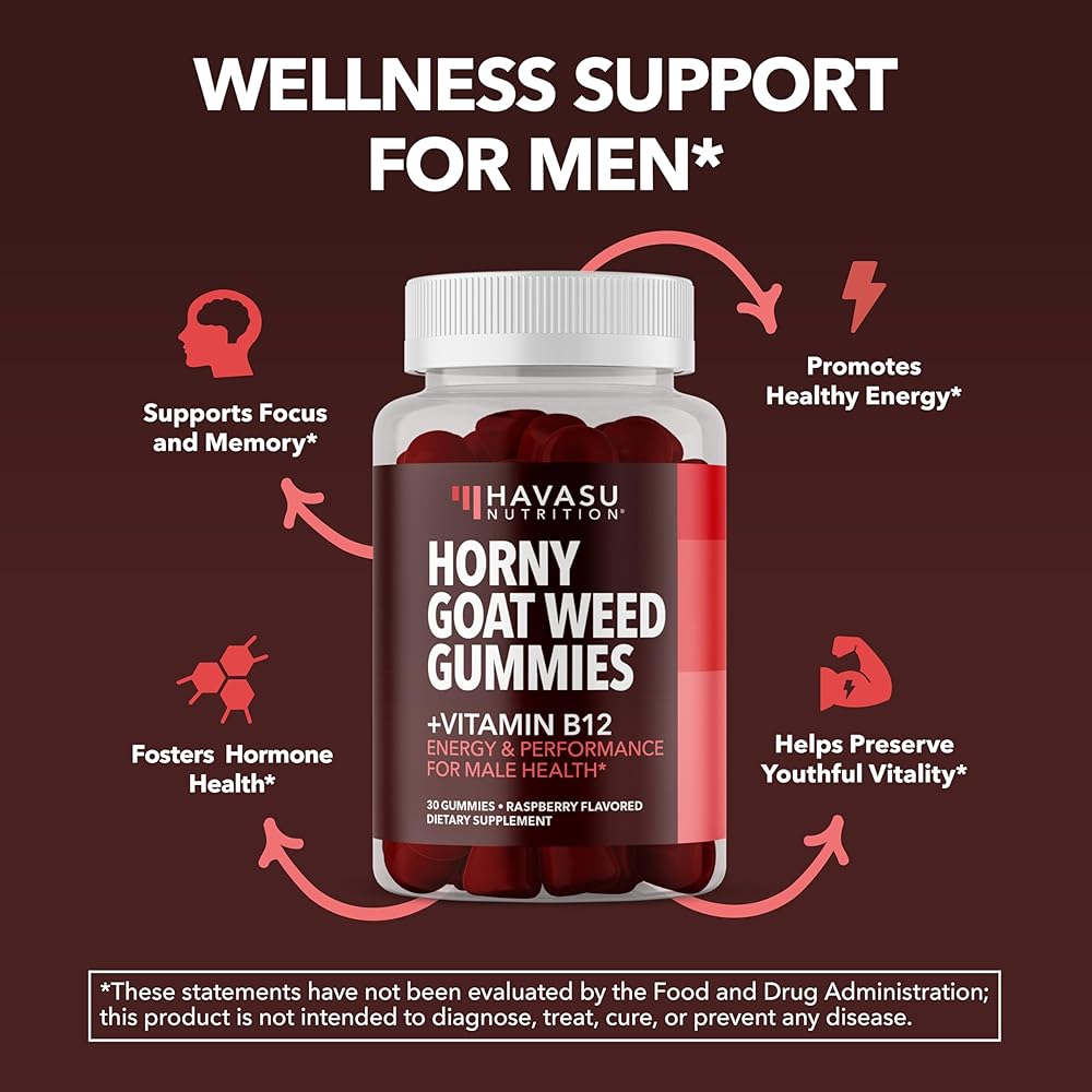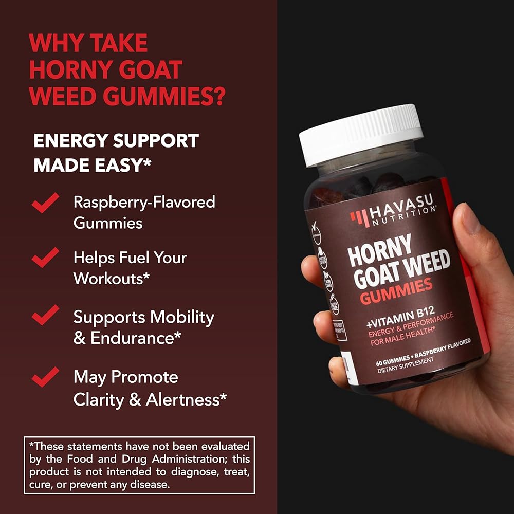 OPTIMAL HEALTH SUPPLEMENT - Support your wellness with our unique horny goat weed gummies enriched with B 12 vitamin. Experience natural energy support for increased endurance and optimal male and female performance at any age.