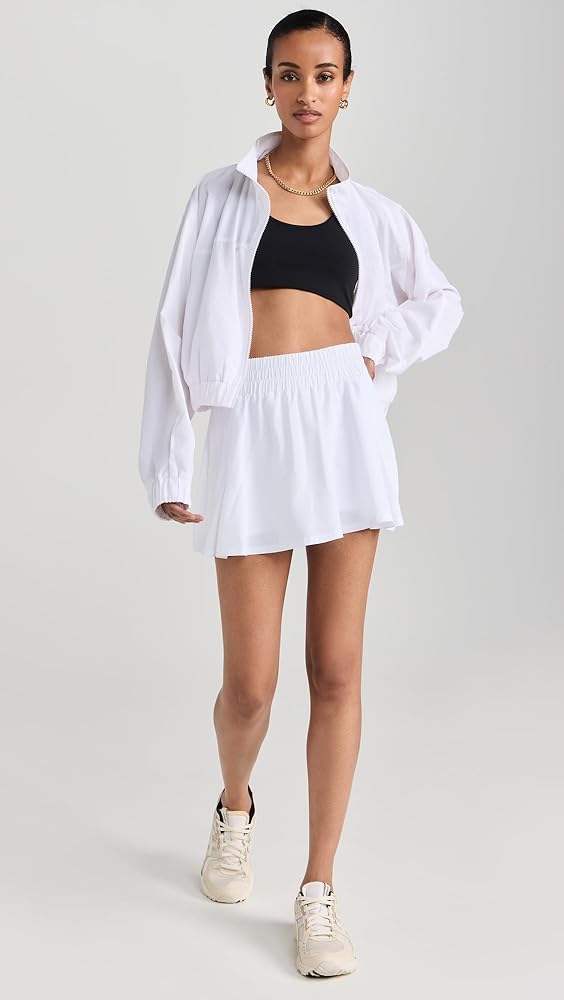 - Built-in activewear jersey shorts, Covered elastic waistband, Godet hem