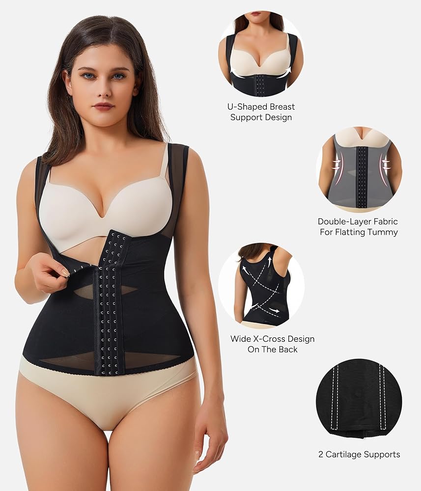 COMFORT & STYLE WITH WAIST TRAINER VEST - Nebility waist cincher shapewear, made from a superior blend of 88% nylon and 12% spandex, breathable mesh fabric is not only boosts the waist trainer for women under clothes breathability but also dispels any sensation of being overheated. With these postpartum waist trainer, you can bid farewell to any unsightly lines and embrace comfort that lasts all day, thanks to our cozy sculpt touch waist trainer.