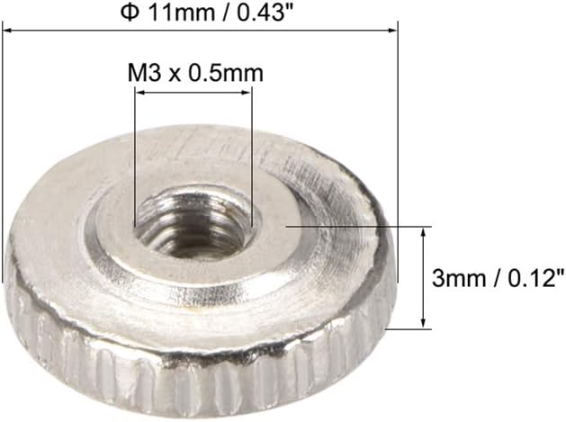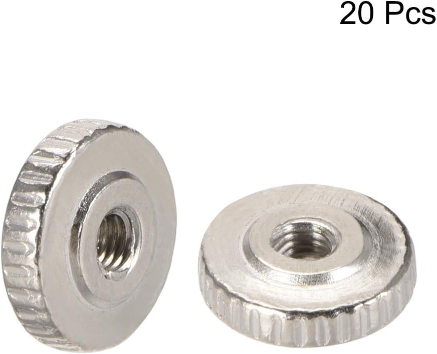 uxcell Round Knurled Thumb Nuts Conector Lock Adjusting Nuts, M3 Female Threaded Thin Type, Nickel Plated, Pack of 20