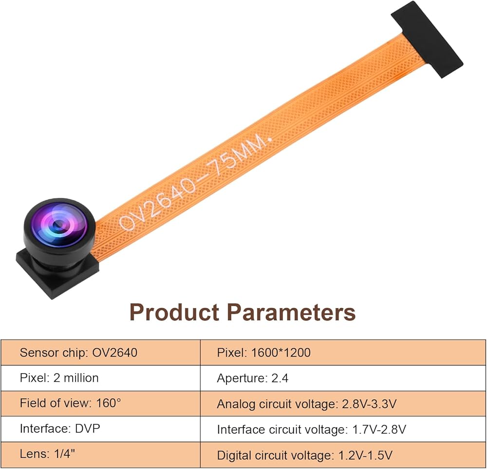 The OV2640 camera's small size and low operating voltage provide the required functionality for the microcontroller's UXGA camera and image processor.