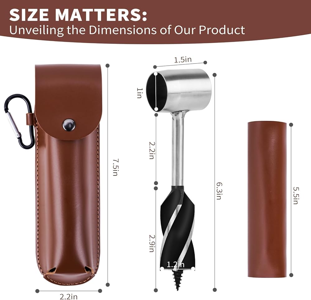 Auger drill bit survival tool easy to store and transport, it comes with a finely stitched leather pouch for protection.