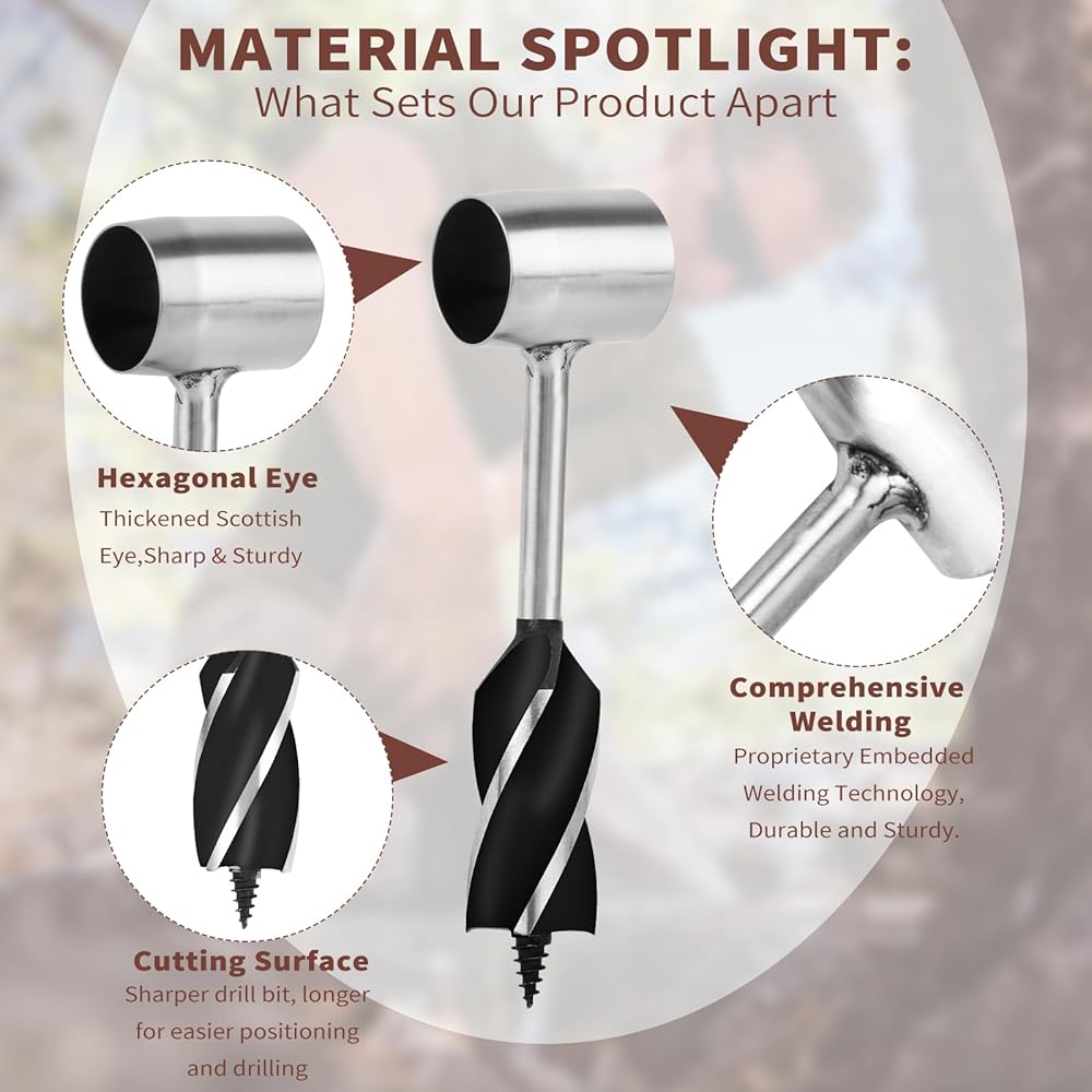 The Scotch eyed auger bushcraft can easily drill a one-inch hole of the same diameter as the nail. Made from high-carbon steel, it is ready to use right out of the box. Each hand drill undergoes professional polishing to create perfect holes that are sharp and durable.