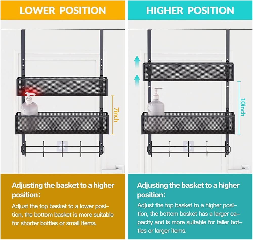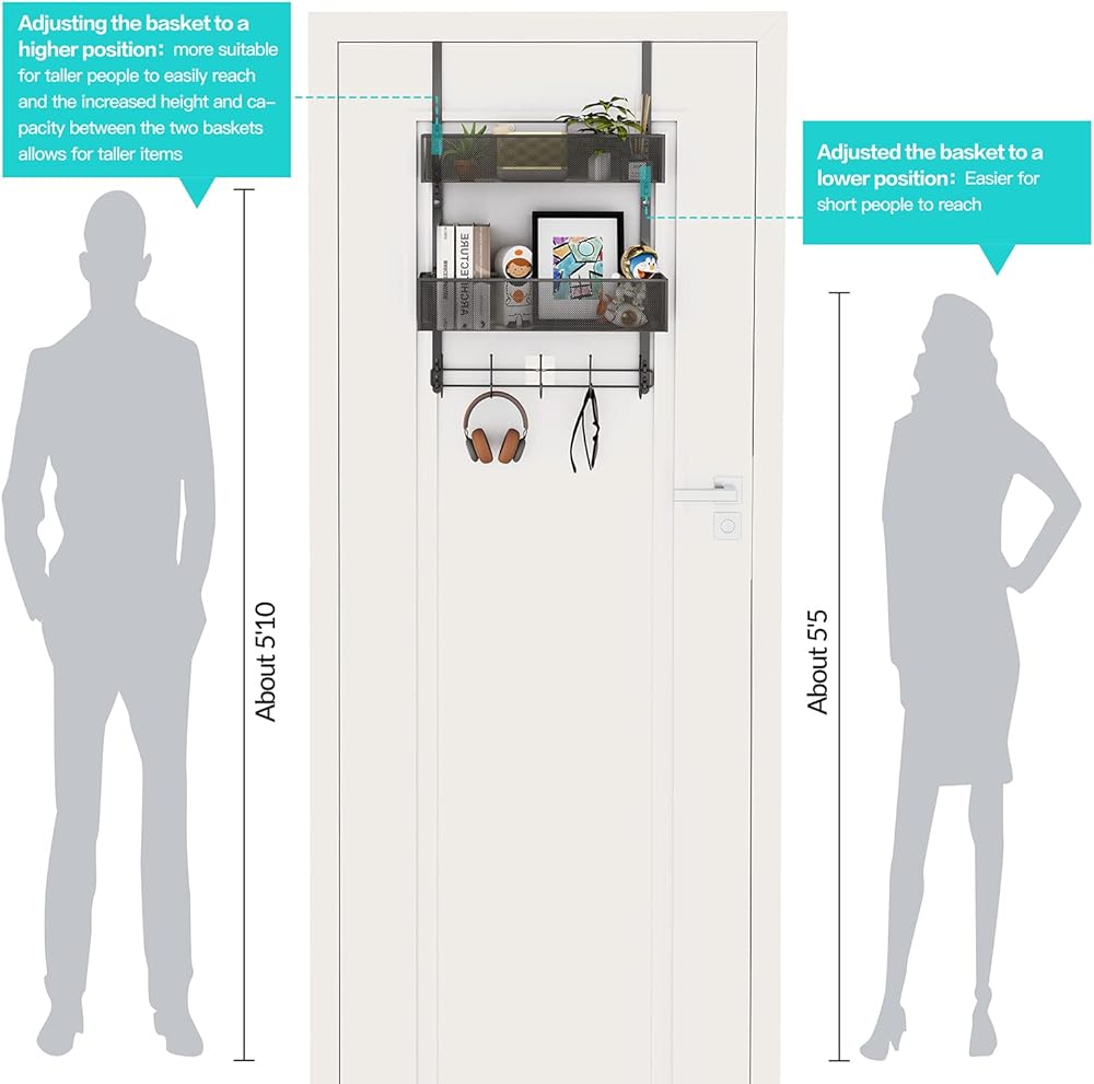 👍【Adjustable Basket's Height of Over Door Organizer】 The height of the over door basket can be adjusted, according to your heights or your other needs to choose appropriate snap position. The over door organizer can be used in the bedroom, kitchen, bathroom , office, room in rv and all other places that can be hung and creates extra storage space.