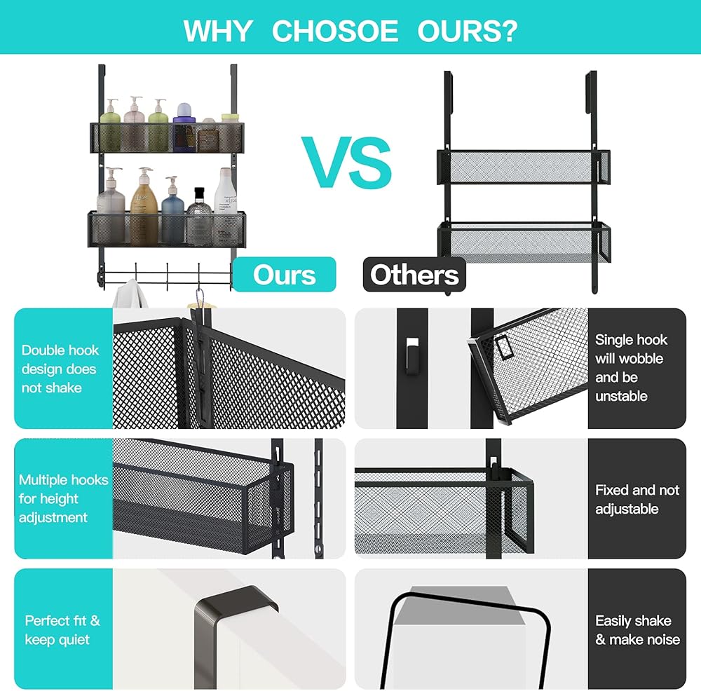 👍【Durable & Stable Over the Door Hanger】Each basket has 4 snap designs that make it more stable and less prone to shaking and falling apart. Rivet at connection of over the door hooks is an unique design, eliminating unnecessary joint faces where crack may occur. Great pressure-bearing capacity to withstand more weight without bending.