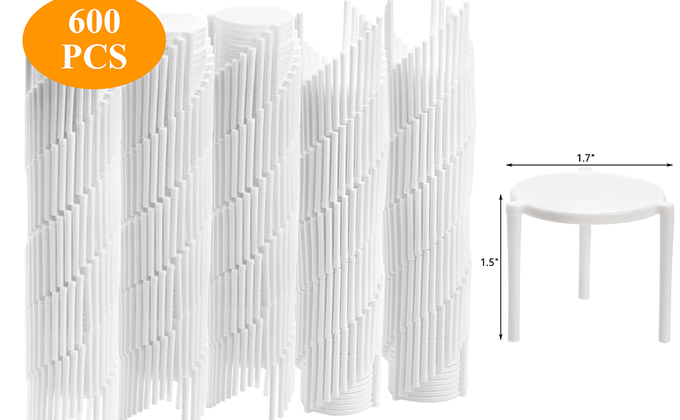 Value Package: You will get 600 pcs pizza saver stands, sufficient quantity to meet your requirements. Each pizza saver is made from sturdy food grade plastic, safe to use. Dimension: 1.5" in height, and 1.7" wide.