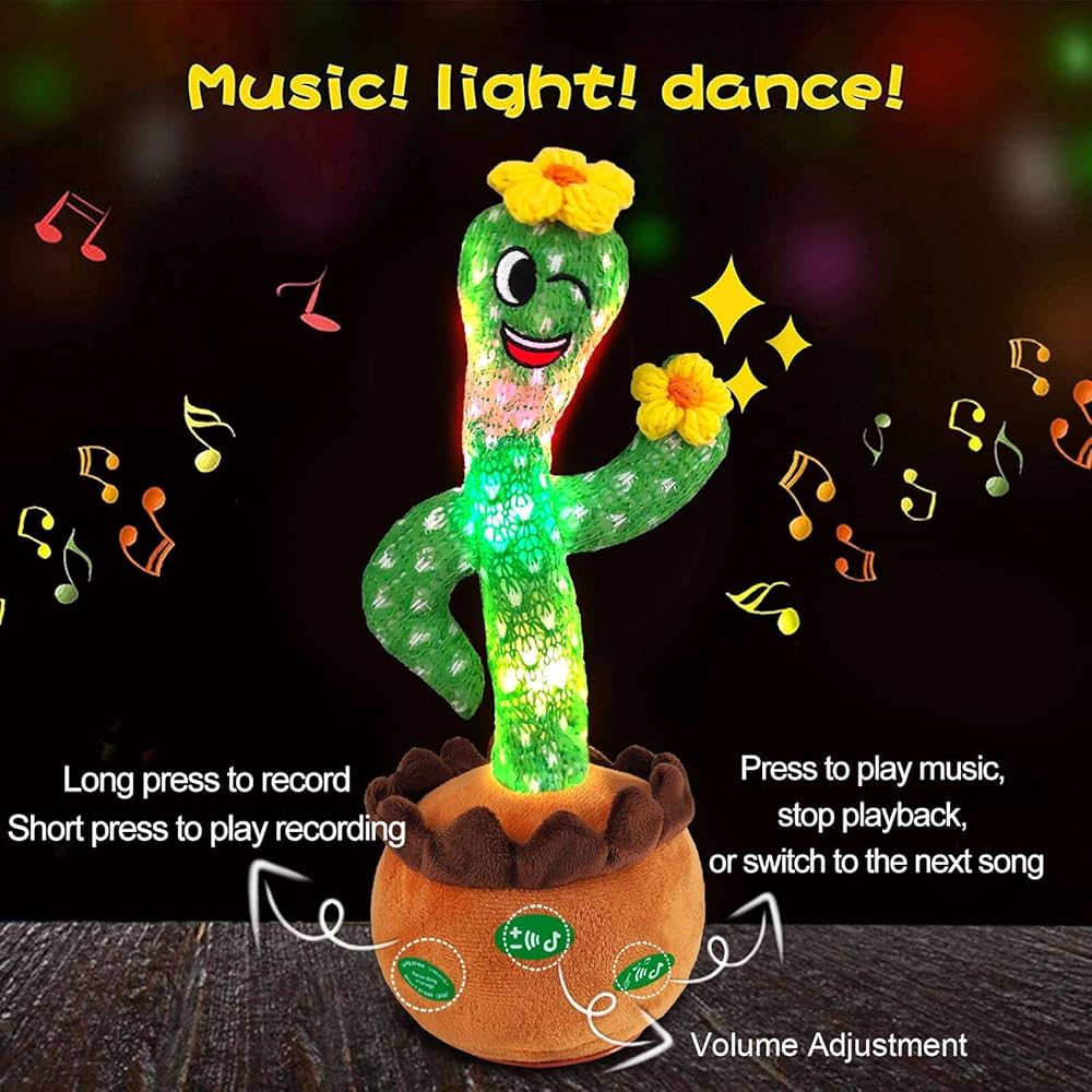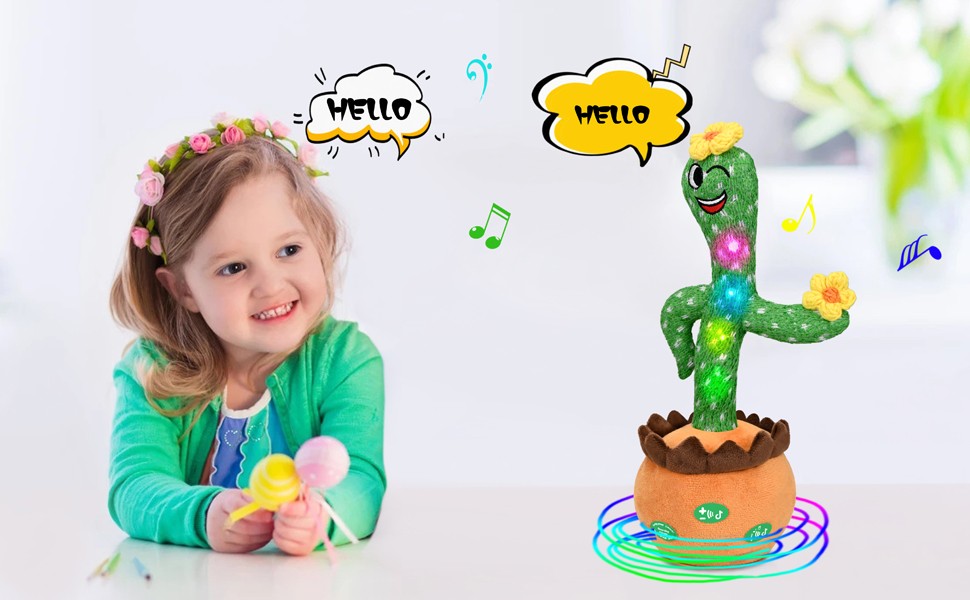 🌵【FUNNY CACTUS BABY TOY】- When you get this talking cactus toy, it will bring a lot of joy to your family. Singing mimicking cactus infant toys. Repeating mimic mocking smart cactus toy for babies toddlers kids. This amazing cactus likes to talk and sing, it has big eyes, is lively and cute, and children love it very much. Healthy and high quality plush fabric, soft and comfortable to the touch, child-friendly.